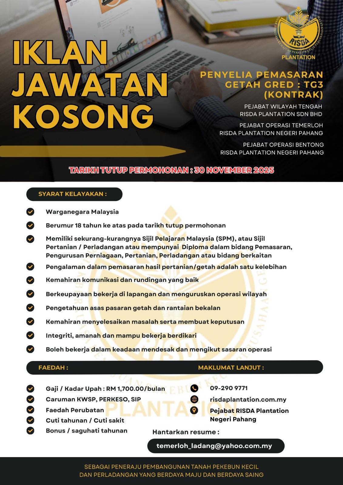 Iklan Jawatan Risda Plantation Wilayah Tengah