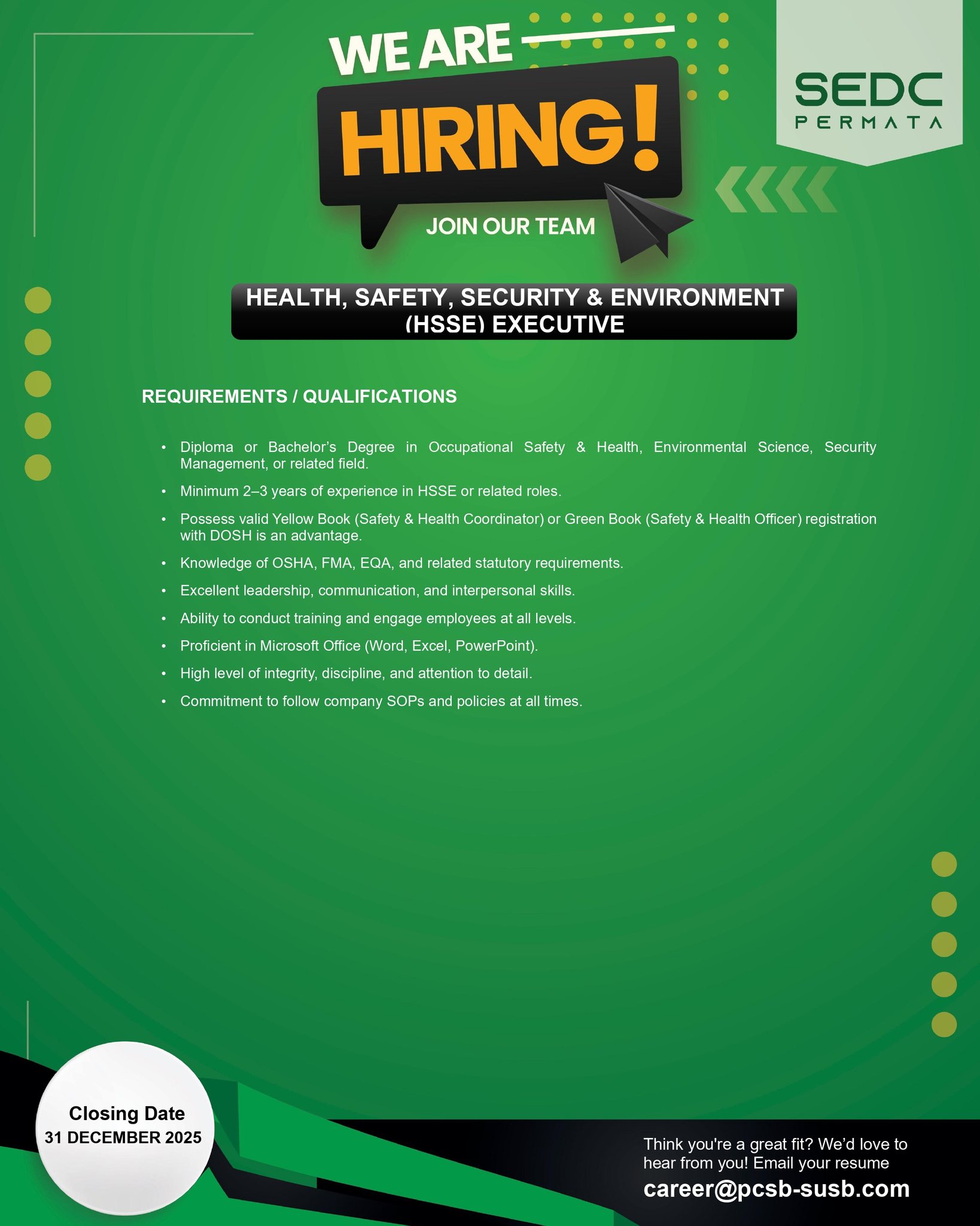 Iklan Jawatan Sarawak Economic Development Corporation SEDC