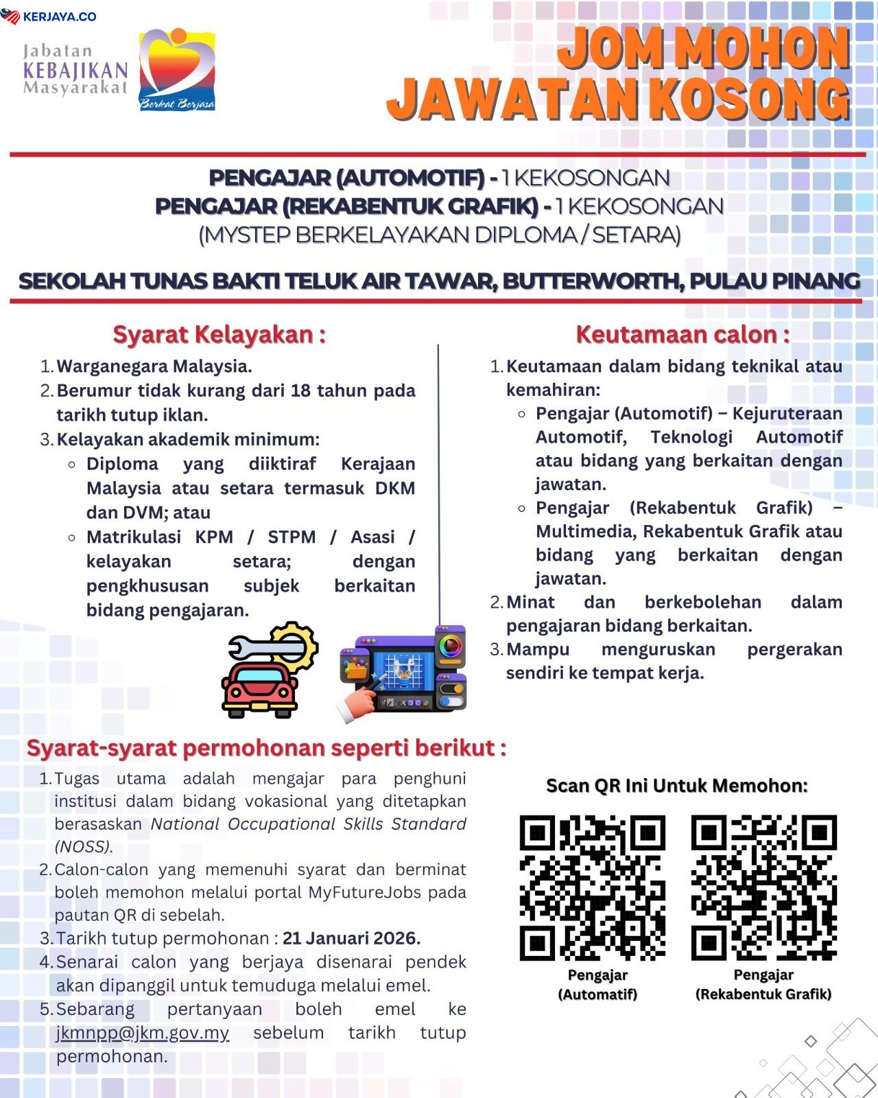 Iklan Jawatan Sekolah Tunas Bakti, Jabatan Kebajikan Masyarakat