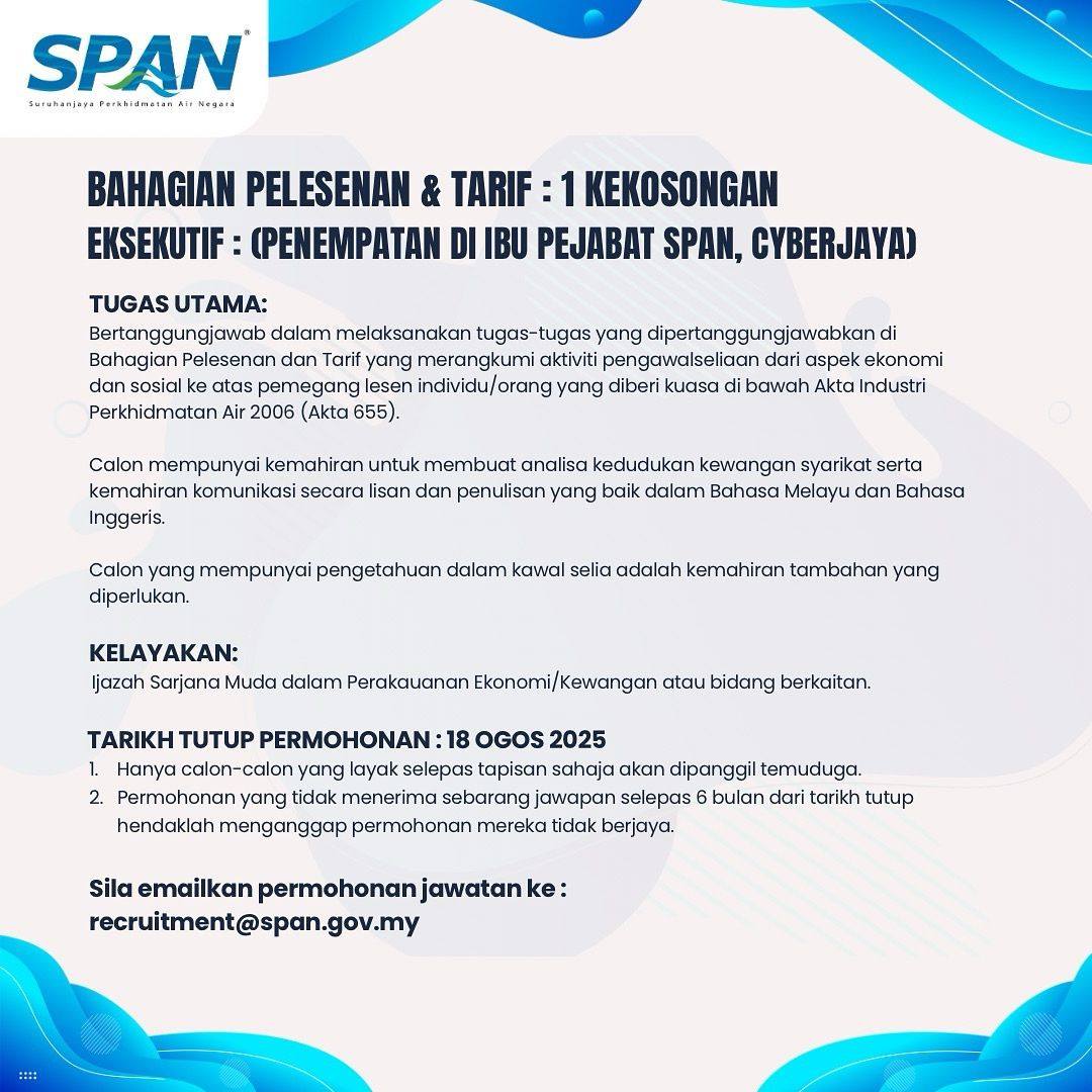 Iklan Jawatan Suruhanjaya Perkhidmatan Air Negara (SPAN)