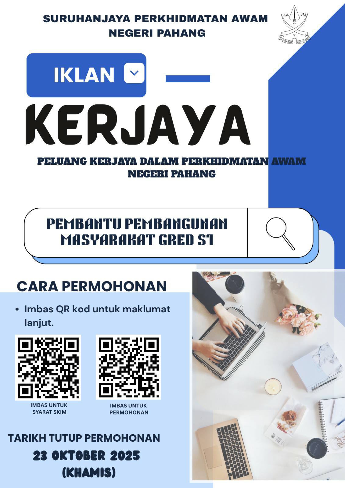 Iklan Jawatan Suruhanjaya Perkhidmatan Awam Negeri Pahang