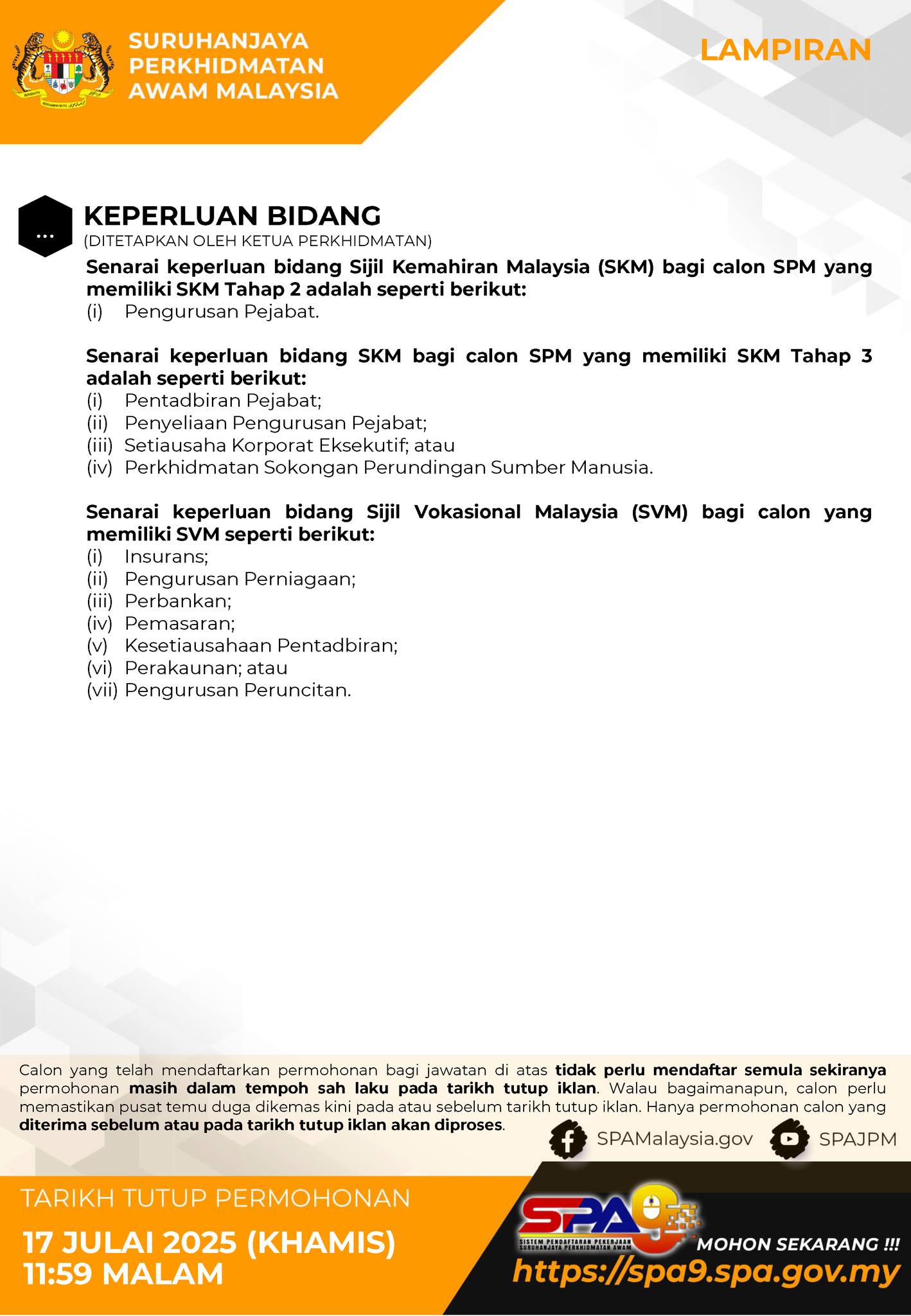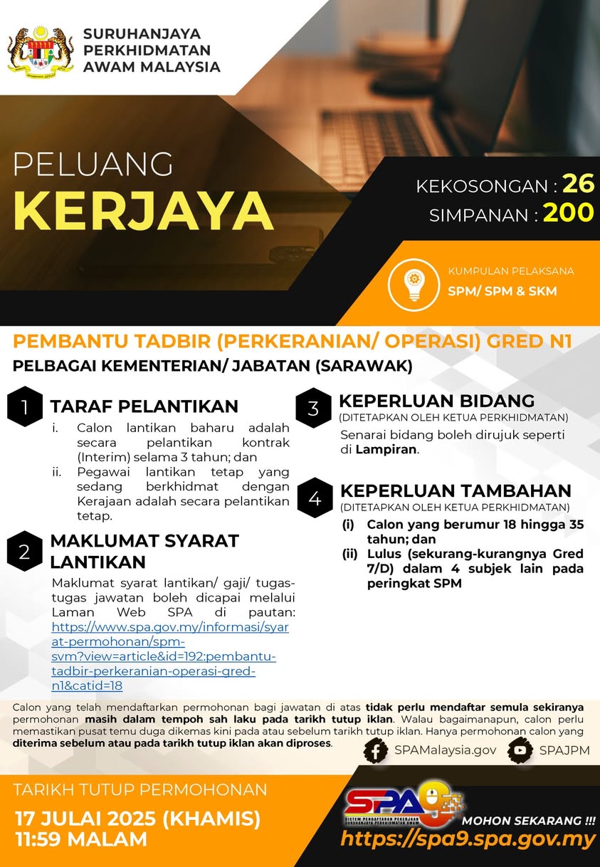 Iklan Jawatan Suruhanjaya Perkhidmatan Awam (SPA9)