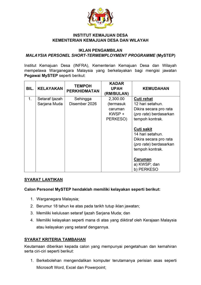Iklan Jawatan Terkini Institut Kemajuan Desa (INFRA)