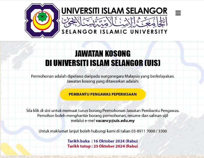 Iklan Jawatan Universiti Islam Antarabangsa Selangor (UIS)