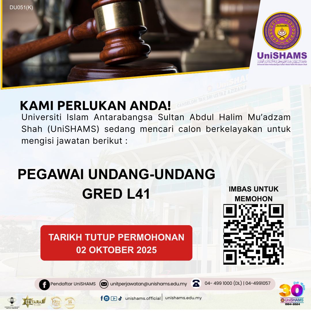 Iklan Jawatan Universiti Islam Antarabangsa Sultan Abdul Halim Mu’adzam Shah (UniSHAMS) RUJUKAN IKLAN