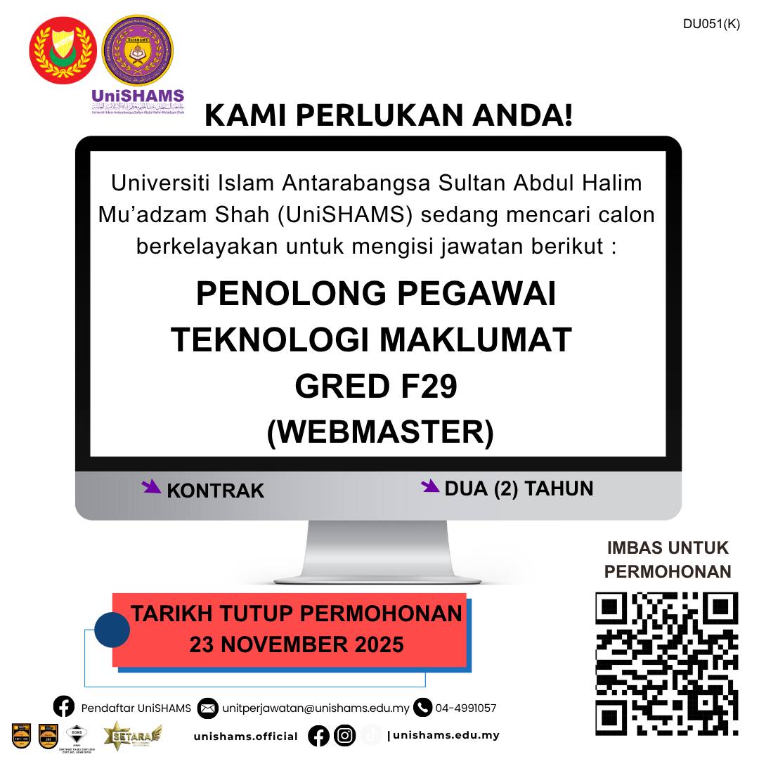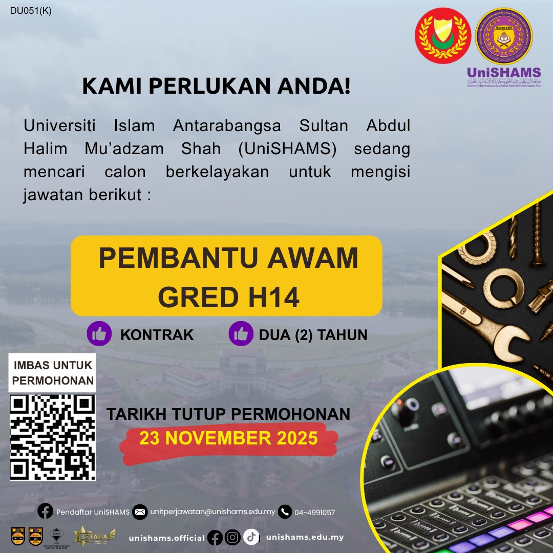 Iklan Jawatan Universiti Islam Antarabangsa Sultan Abdul Halim Mu’adzam Shah (UniSHAMS)