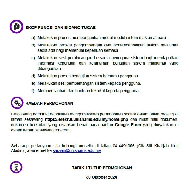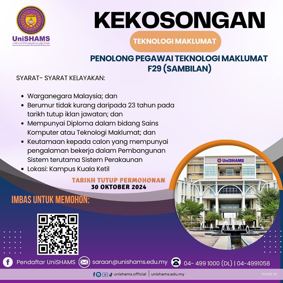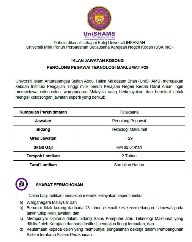 Iklan Jawatan Universiti Islam Antarabangsa Sultan Abdul Halim Mu’adzam Shah (UniSHAMS)