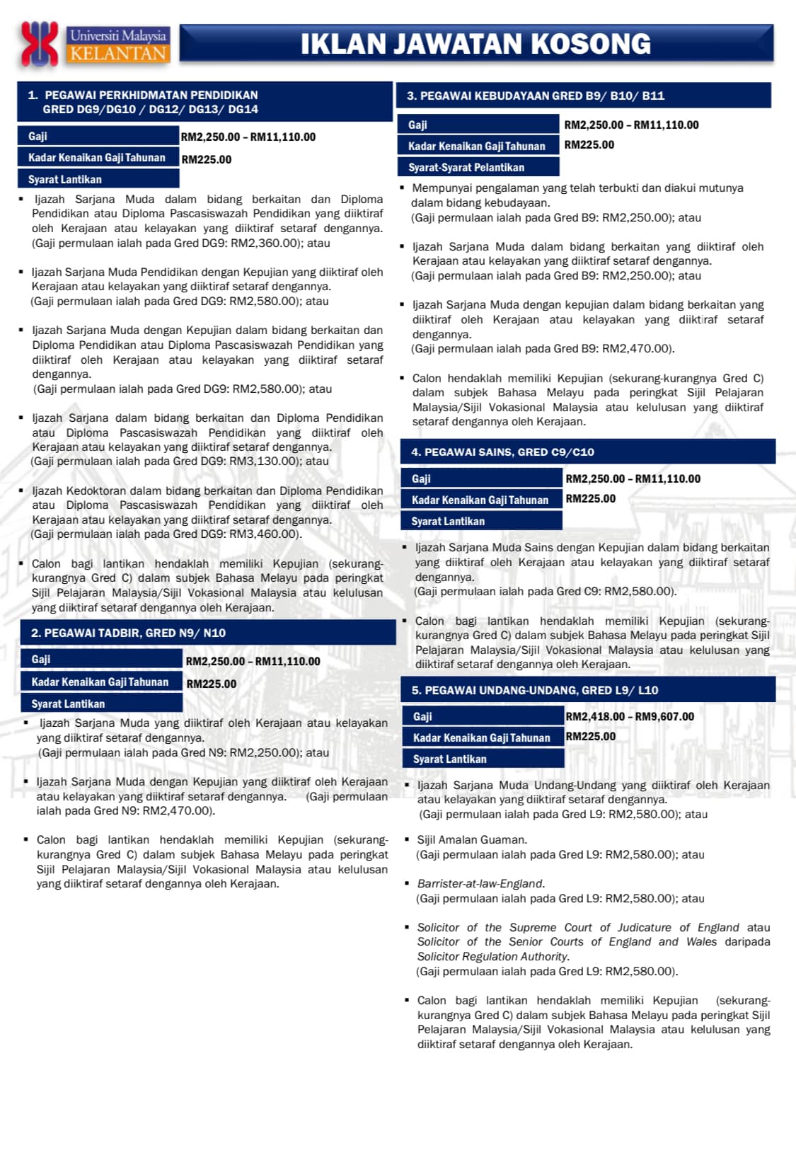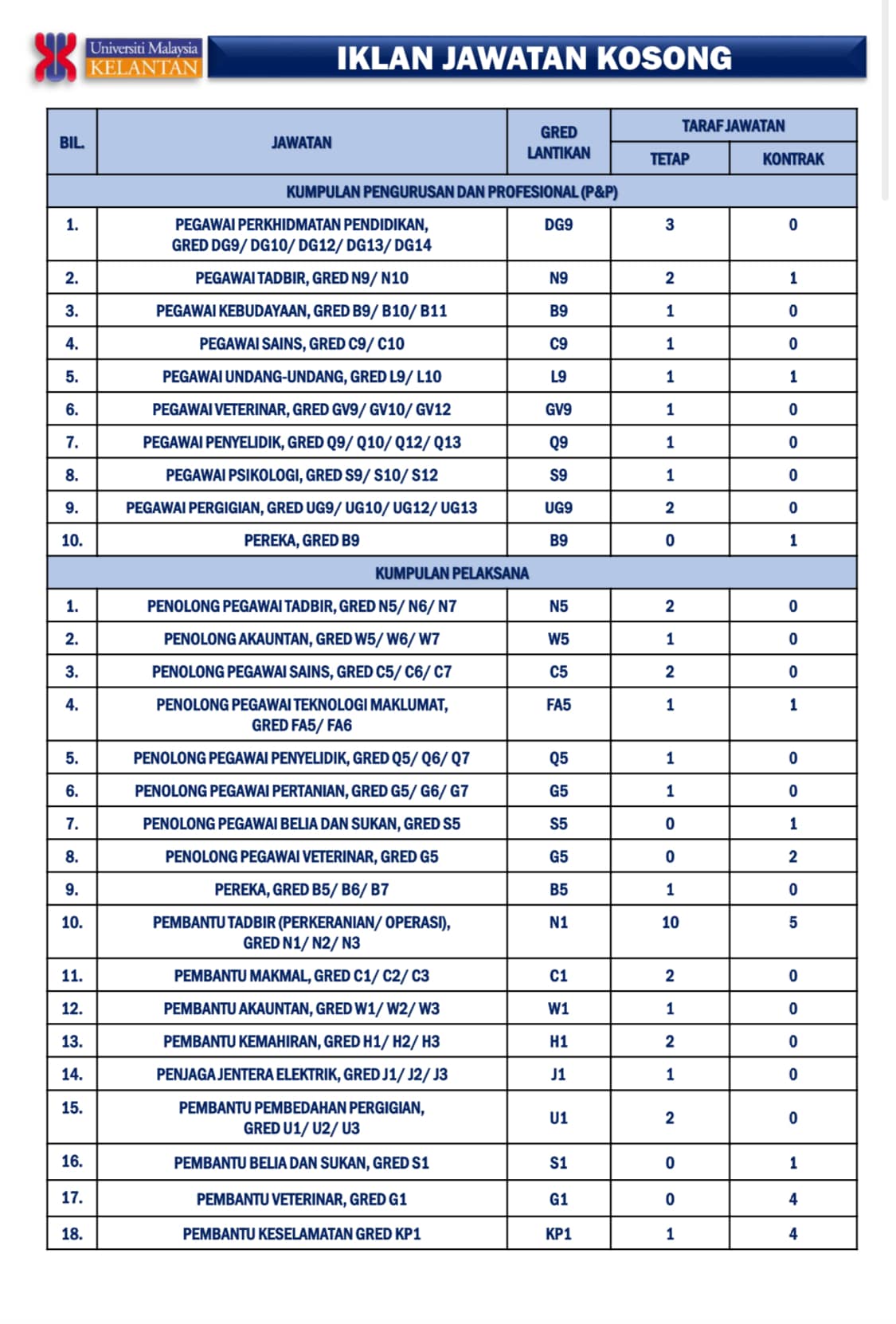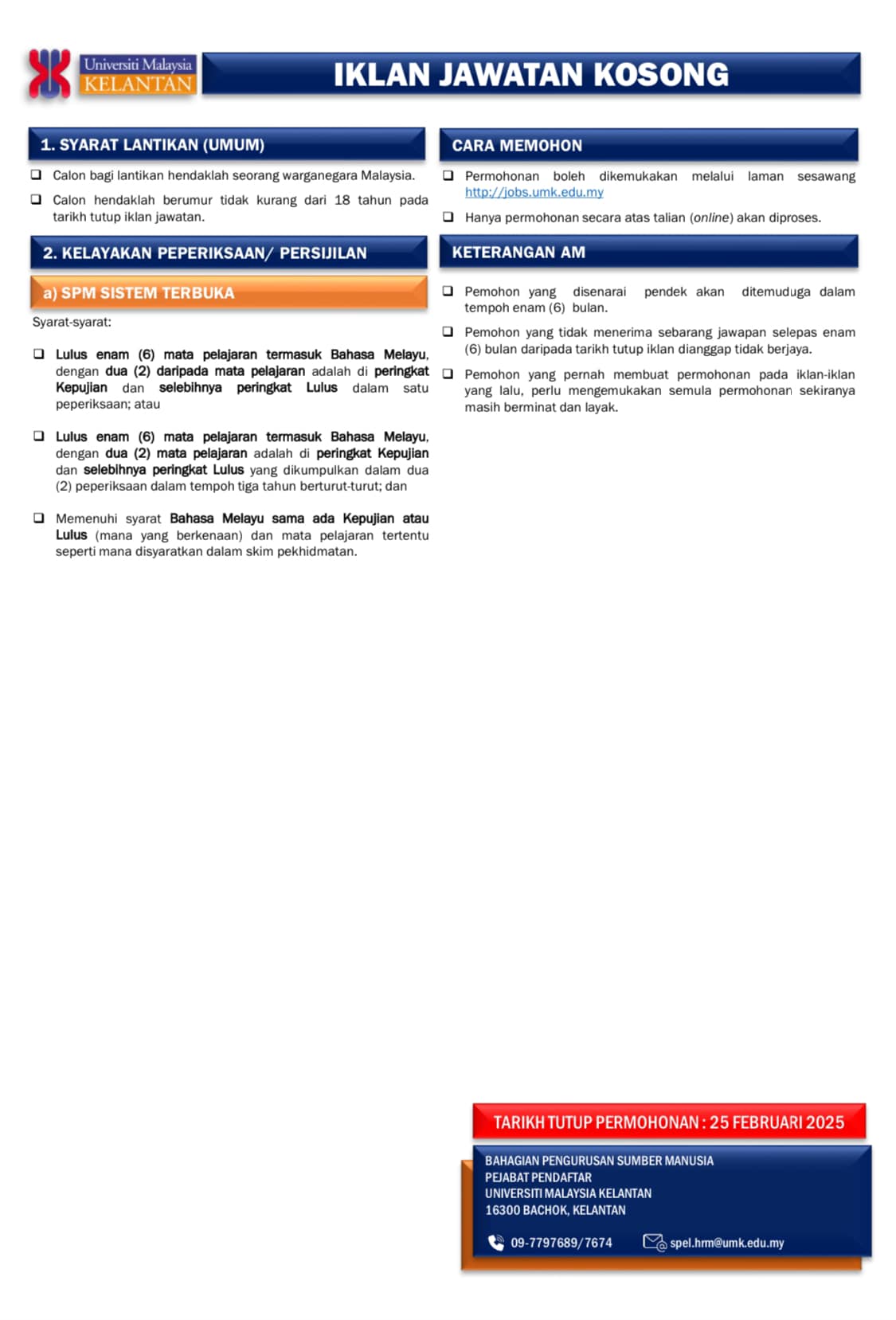 Iklan Jawatan Universiti Malaysia Kelantan (UMK)