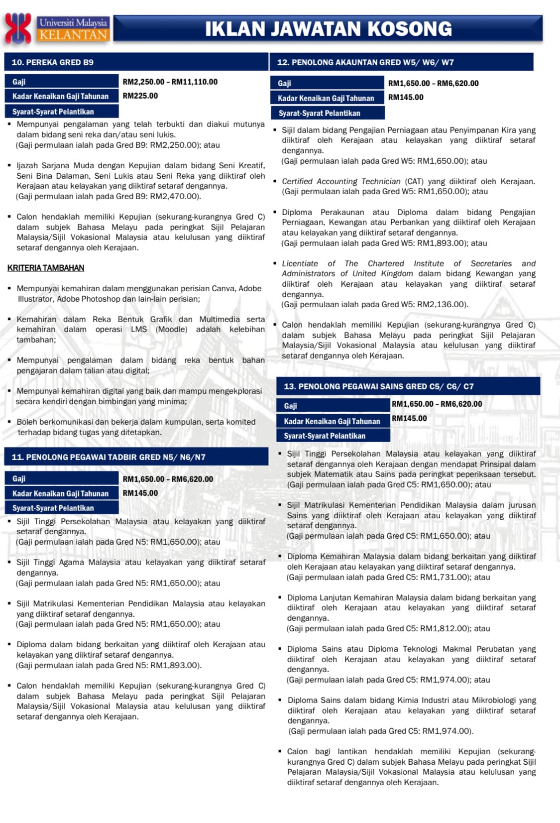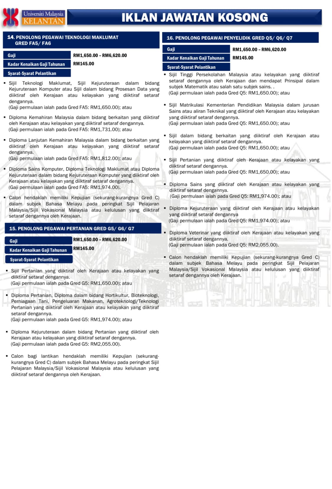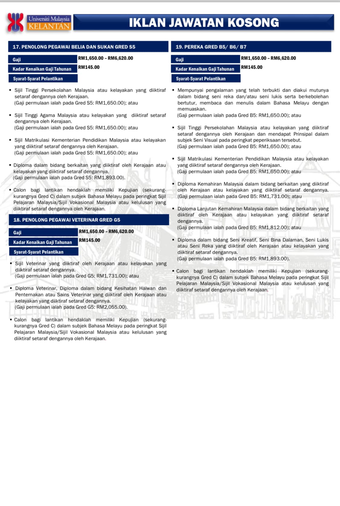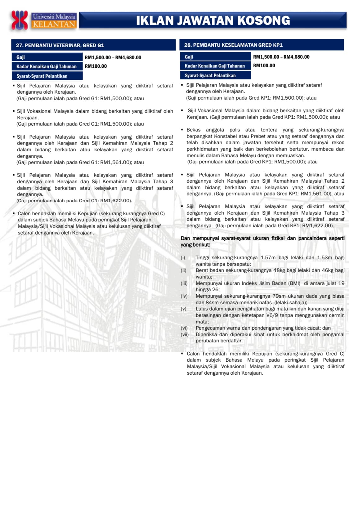 Iklan Jawatan Universiti Malaysia Kelantan (UMK)