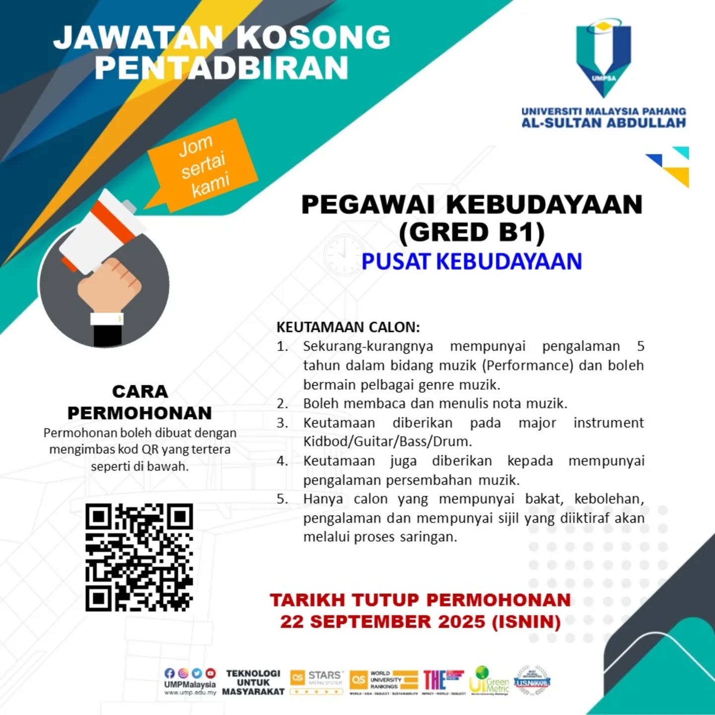 IKLAN JAWATAN UNIVERSITI MALAYSIA PAHANG AL-SULTAN ABDULLAH