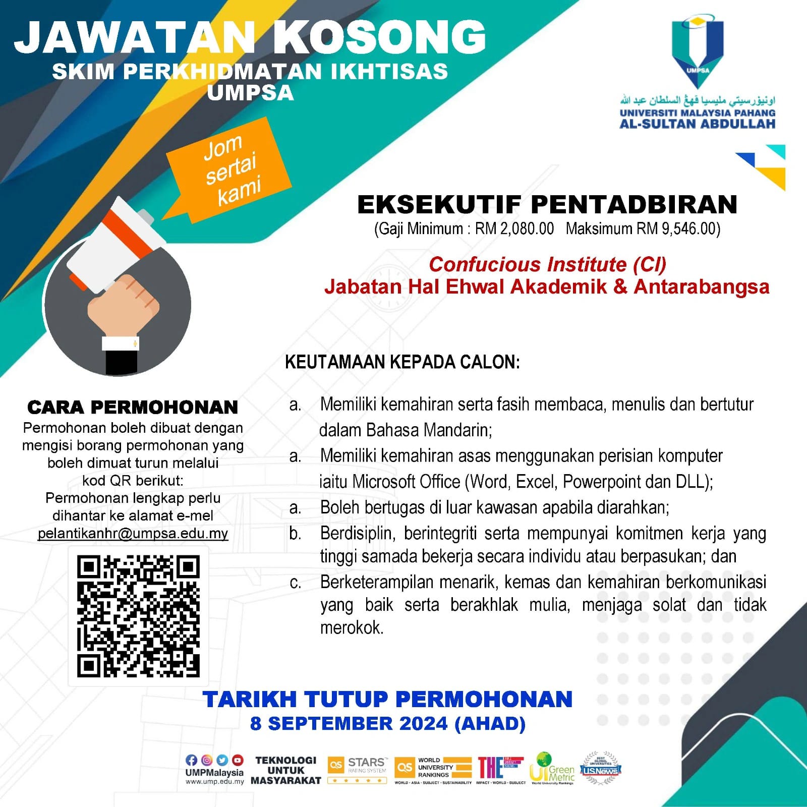 Iklan Jawatan Universiti Malaysia Pahang Al-Sultan Abdullah (UMP)