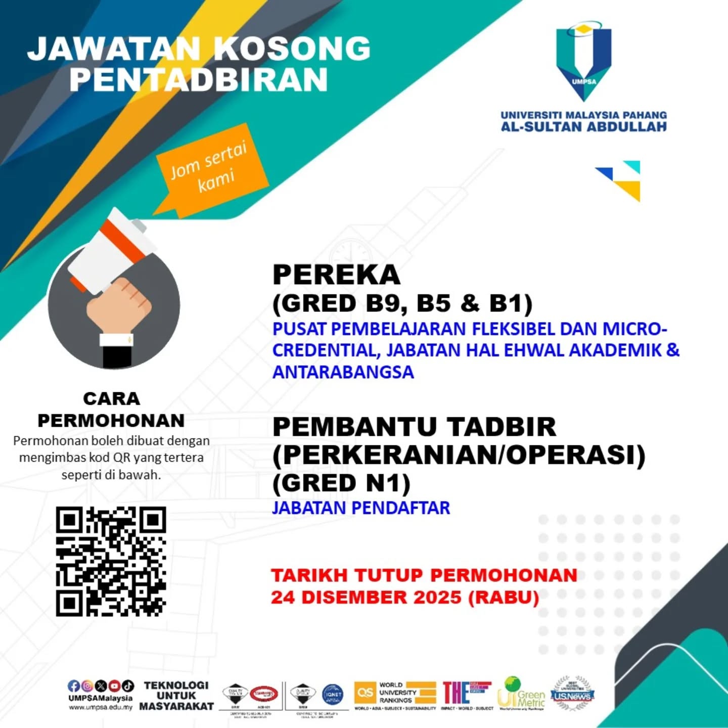 Iklan Jawatan Universiti Malaysia Pahang Al-Sultan Abdullah (UMPSA)