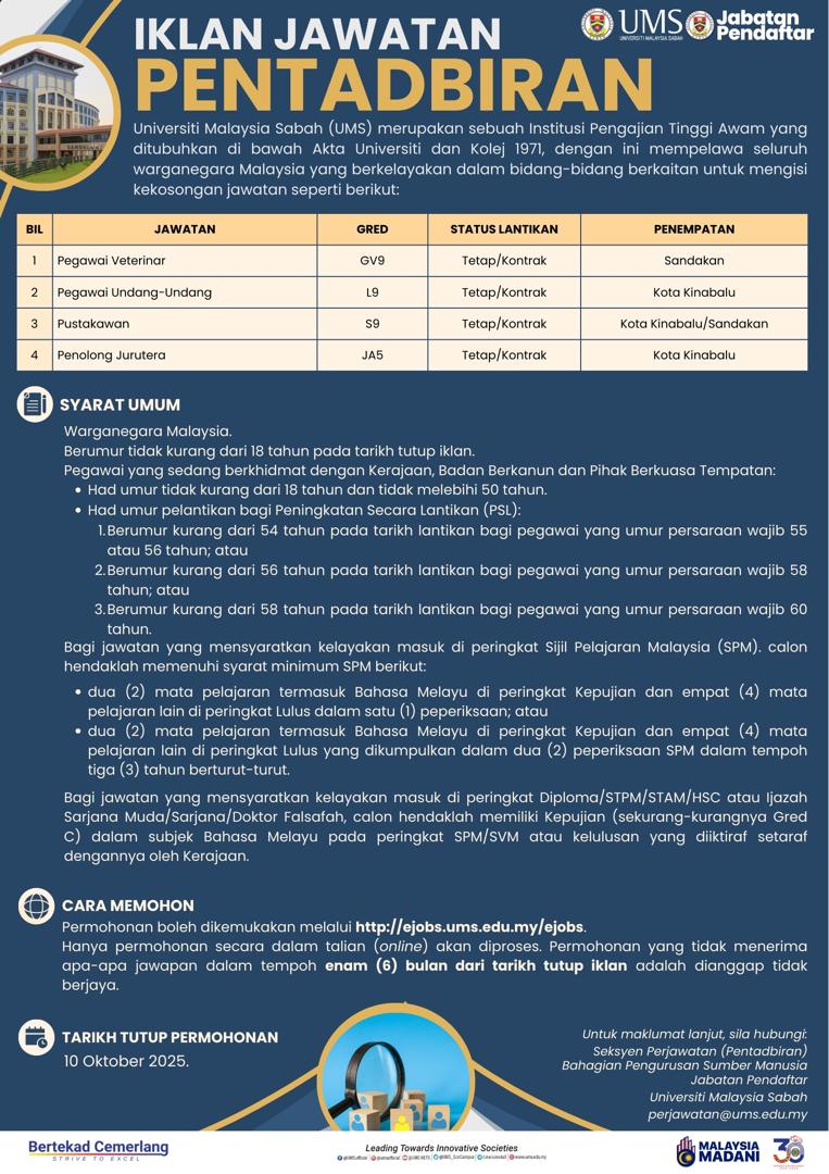 Iklan Jawatan Universiti Malaysia Sabah (UMS)