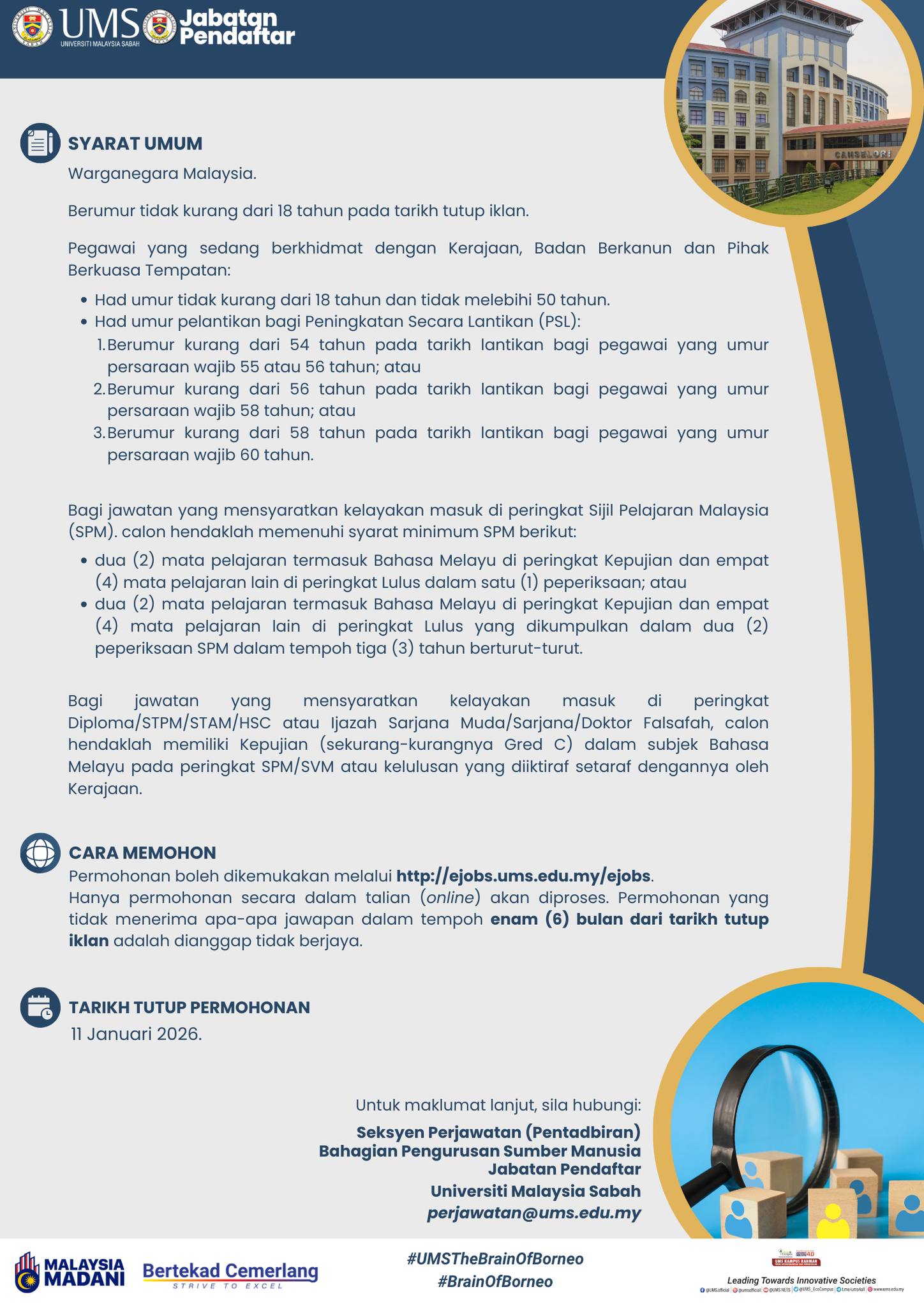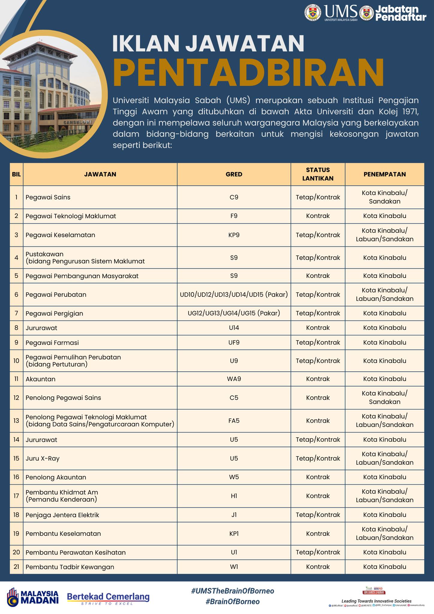 Iklan Jawatan Universiti Malaysia Sabah (UMS)