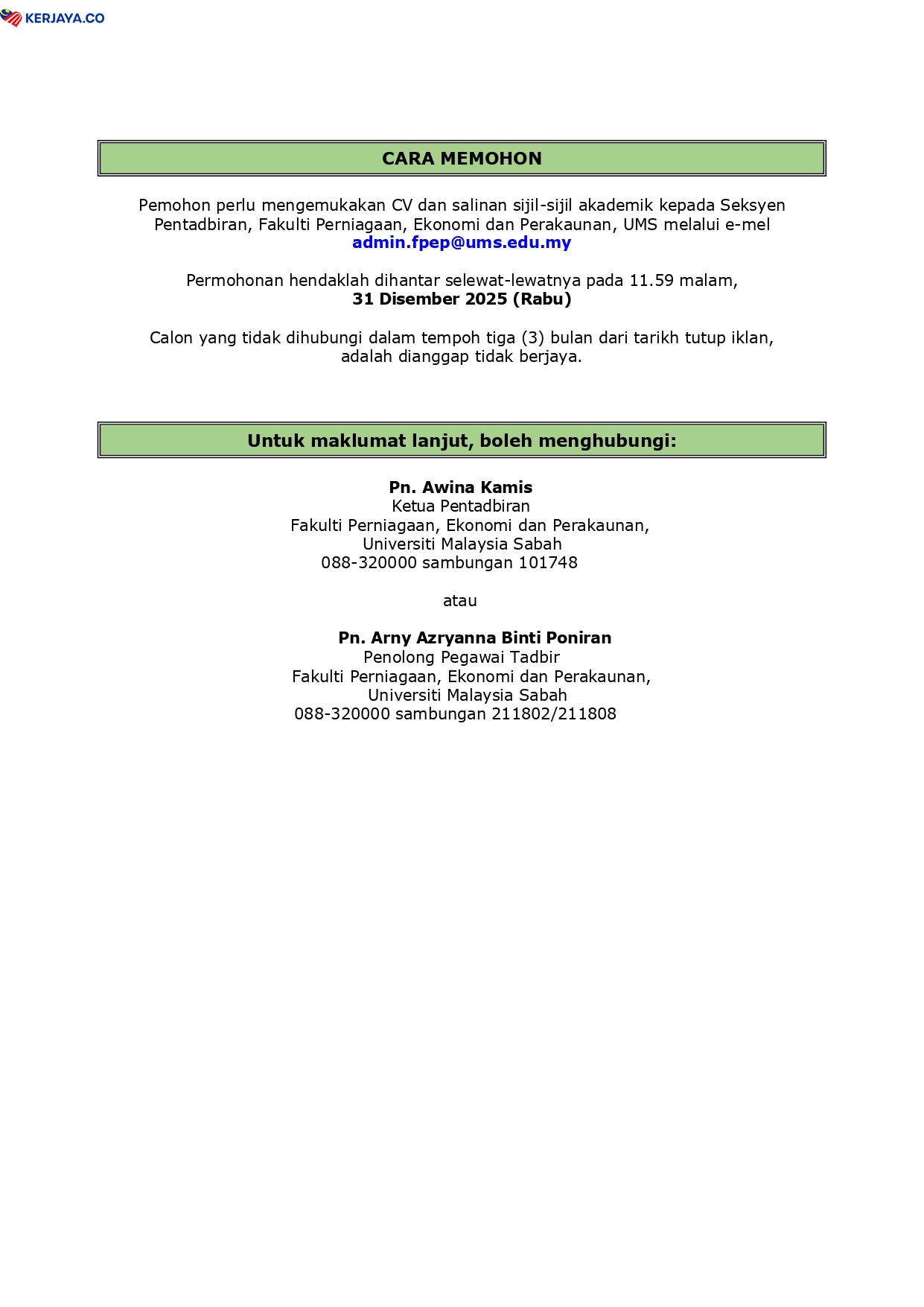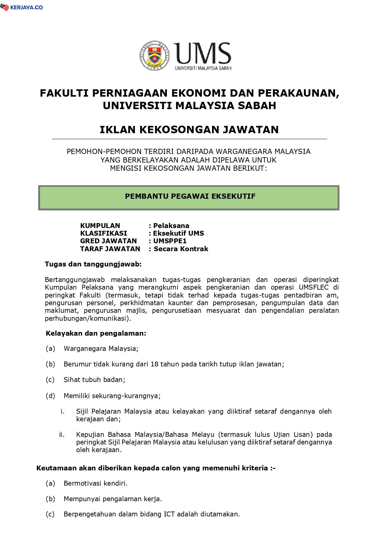 Iklan Jawatan Universiti Malaysia Sabah (UMS)