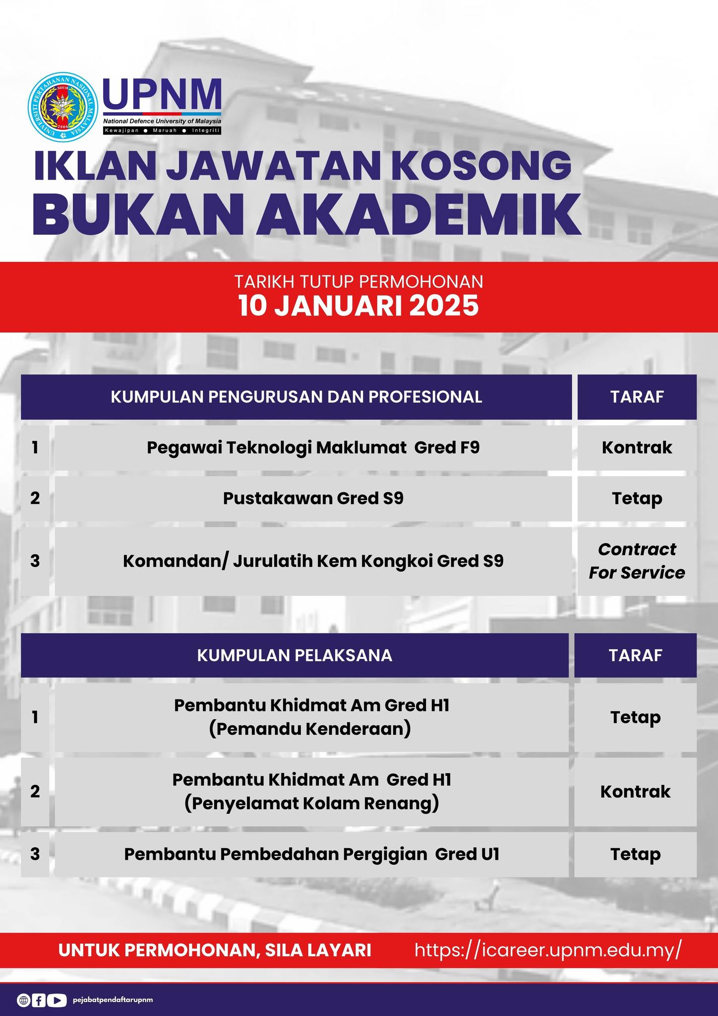 Iklan Jawatan Universiti Pertahanan Nasional Malaysia (UPNM)