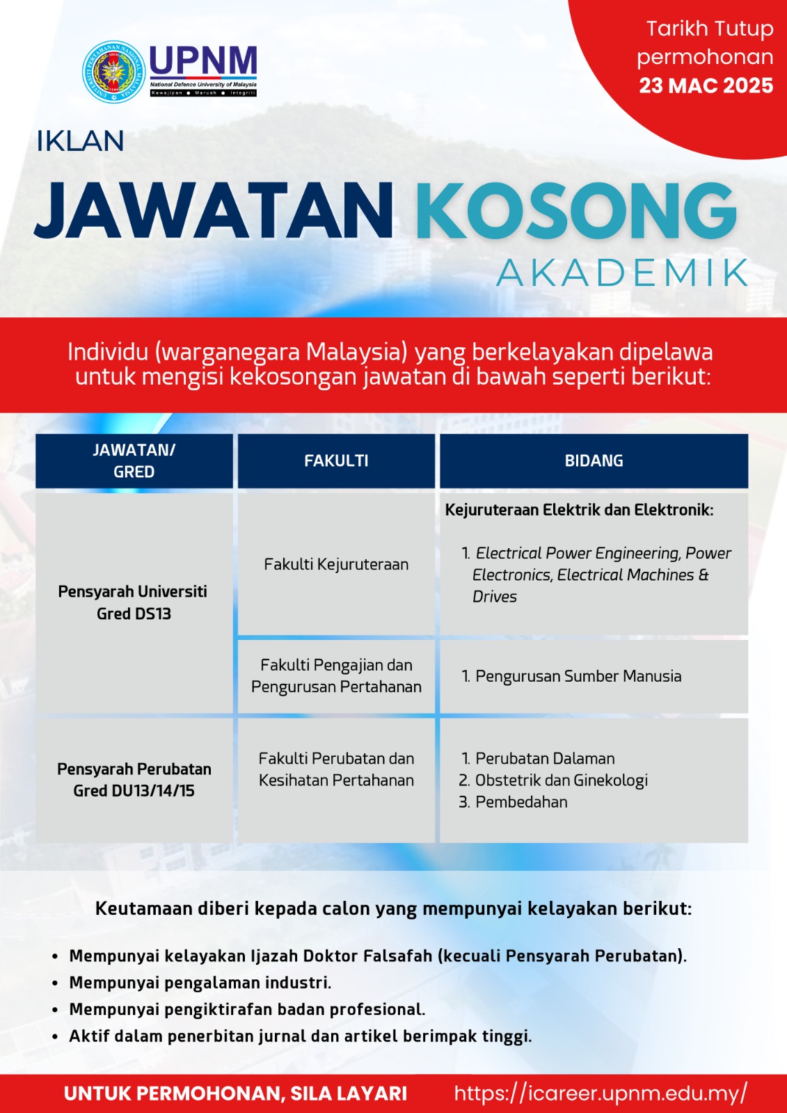 Iklan Jawatan Universiti Pertahanan Nasional Malaysia (UPNM)