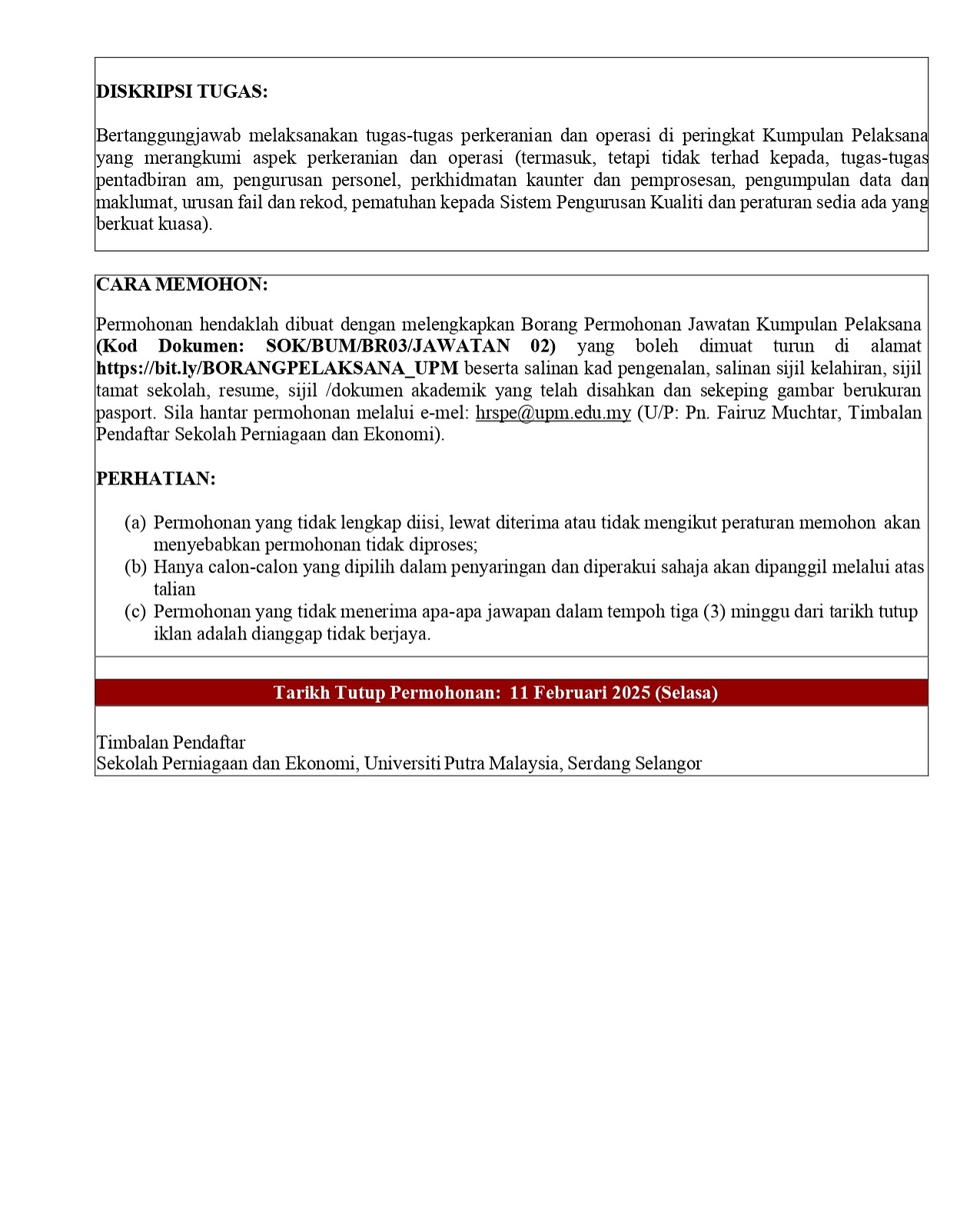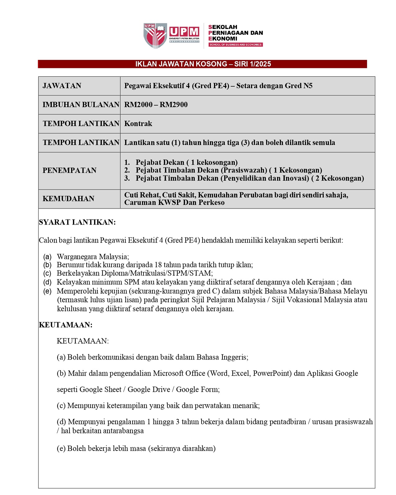 Iklan Jawatan Universiti Putra Malaysia (UPM)
