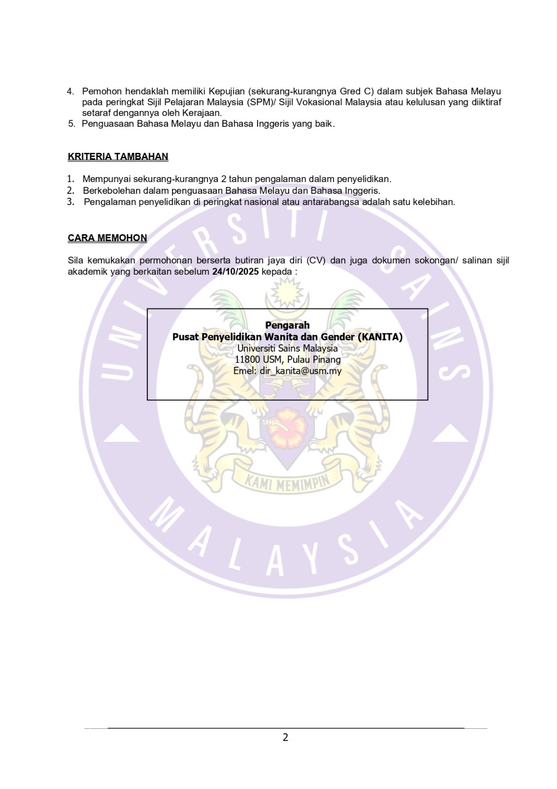 Iklan Jawatan Universiti Sains Malaysia (USM)