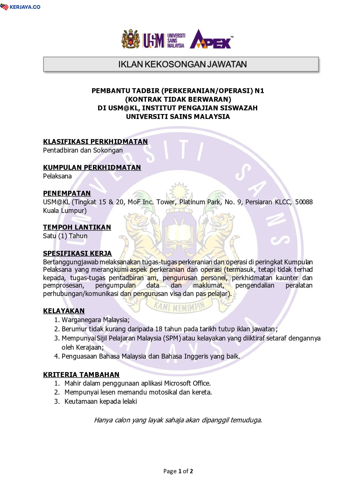 Iklan Jawatan Universiti Sains Malaysia (USM)