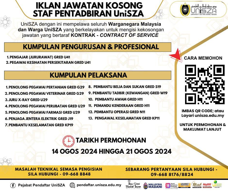 Iklan Jawatan Universiti Sultan Zainal Abidin (UNISZA)