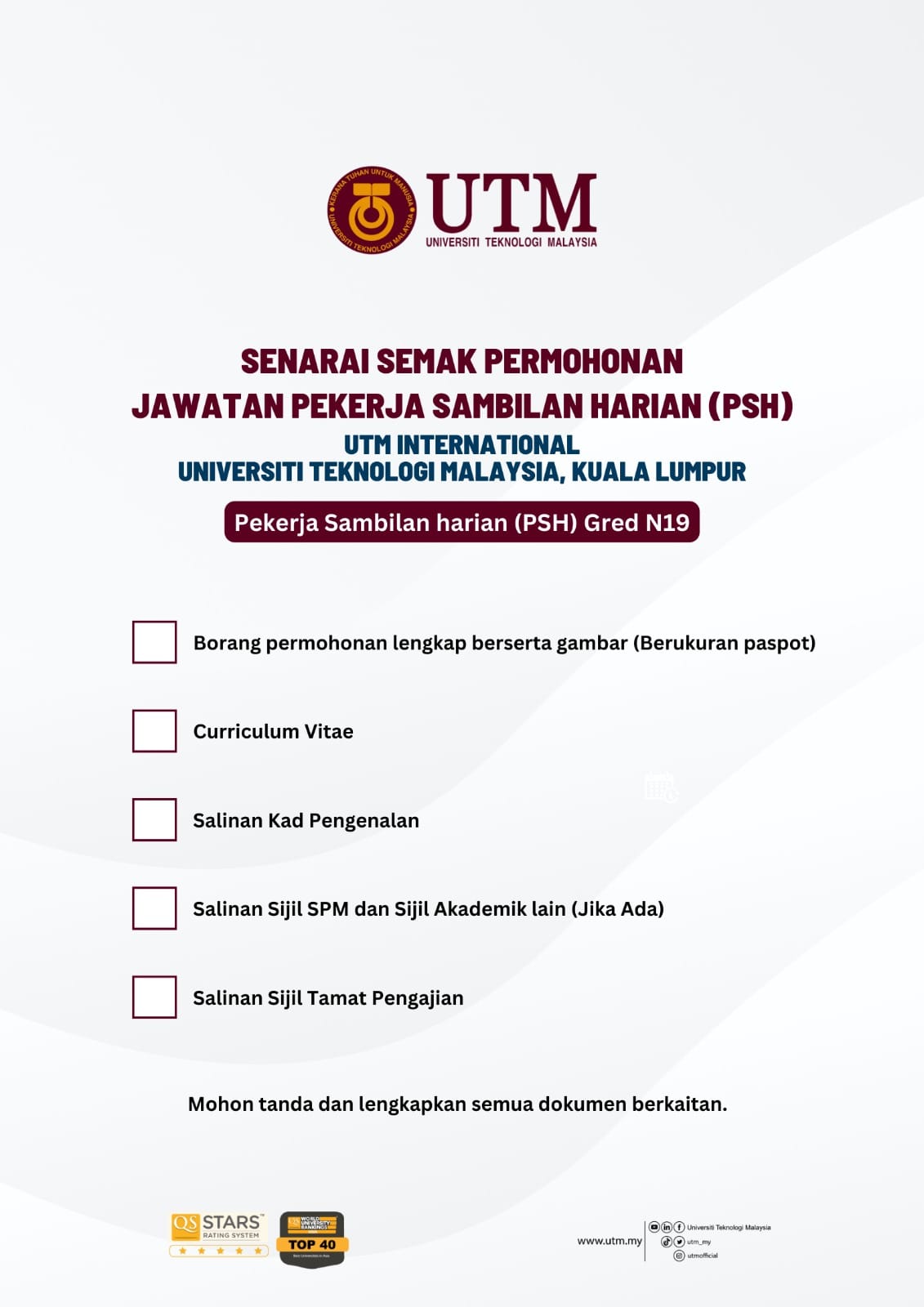 Iklan Jawatan Universiti Teknologi Malaysia (UTM)
