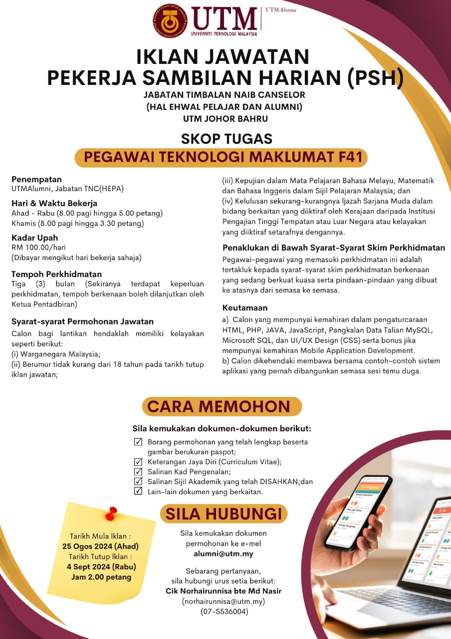 Iklan Jawatan Universiti Teknologi Malaysia (UTM)