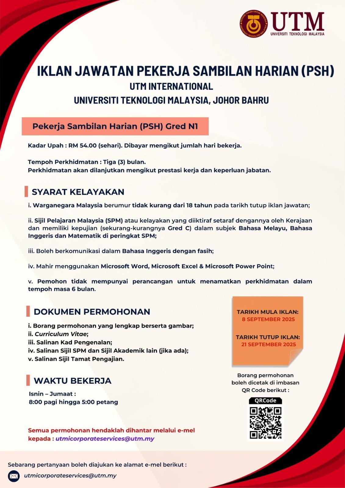 Iklan Jawatan Universiti Teknologi Malaysia (UTM International)