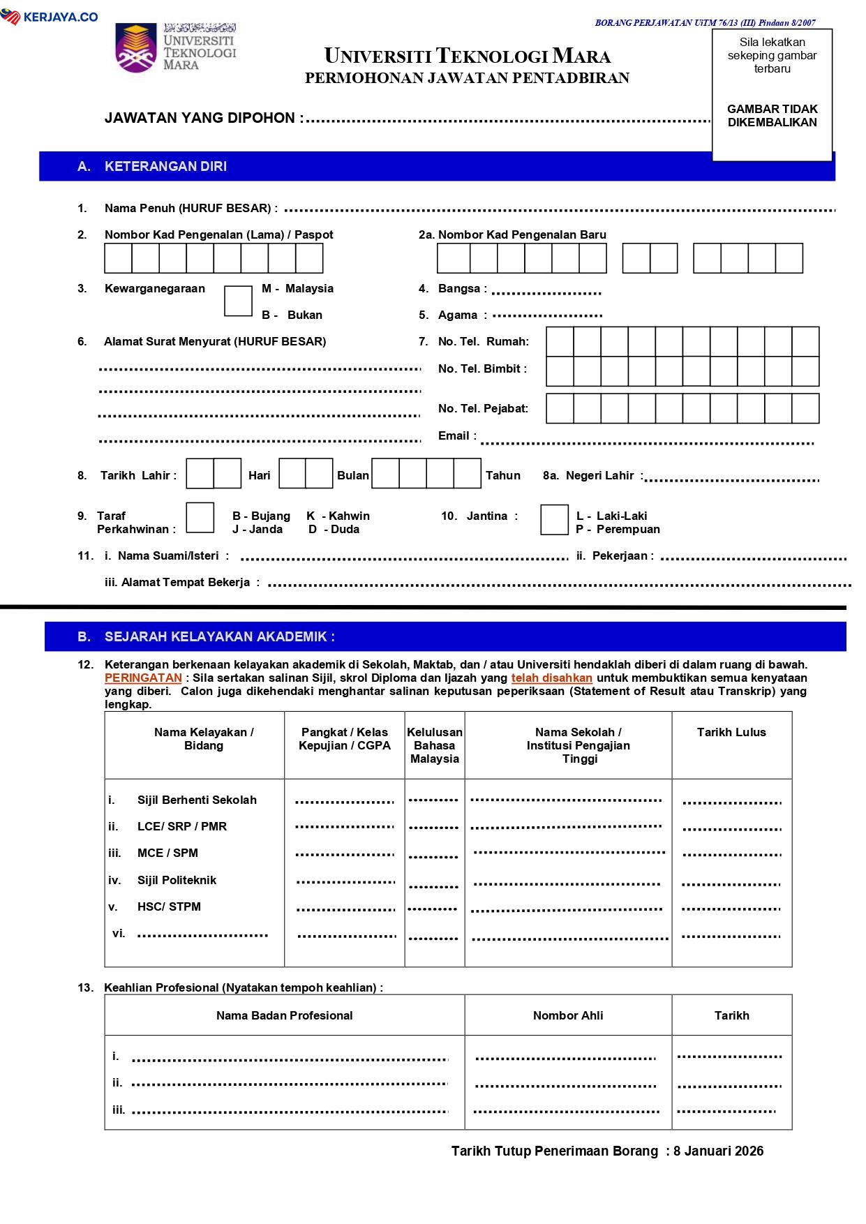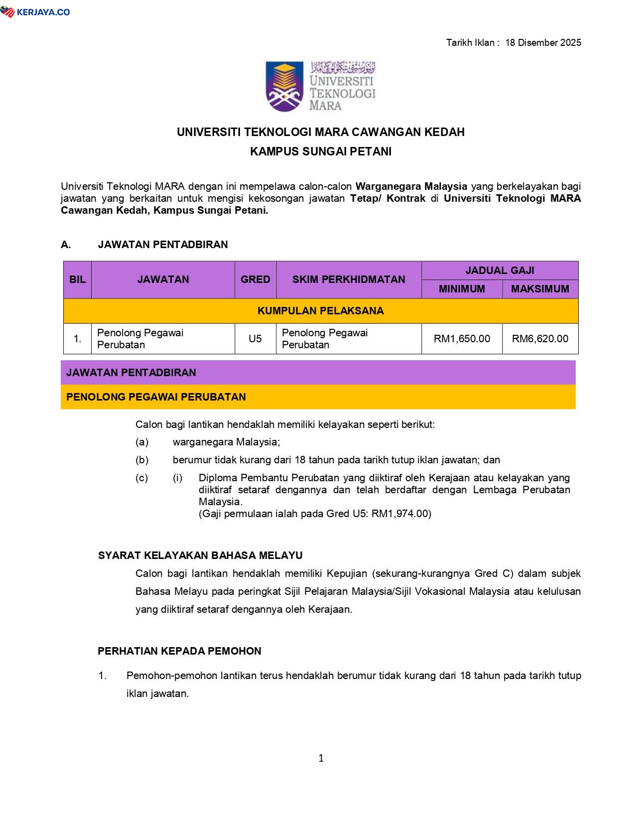 Iklan Jawatan Universiti Teknologi MARA Cawangan Kedah