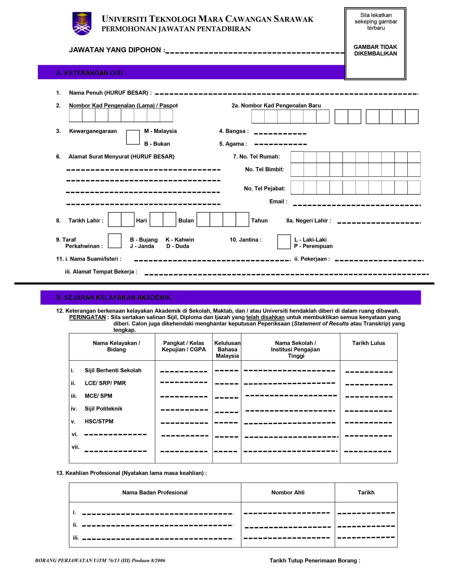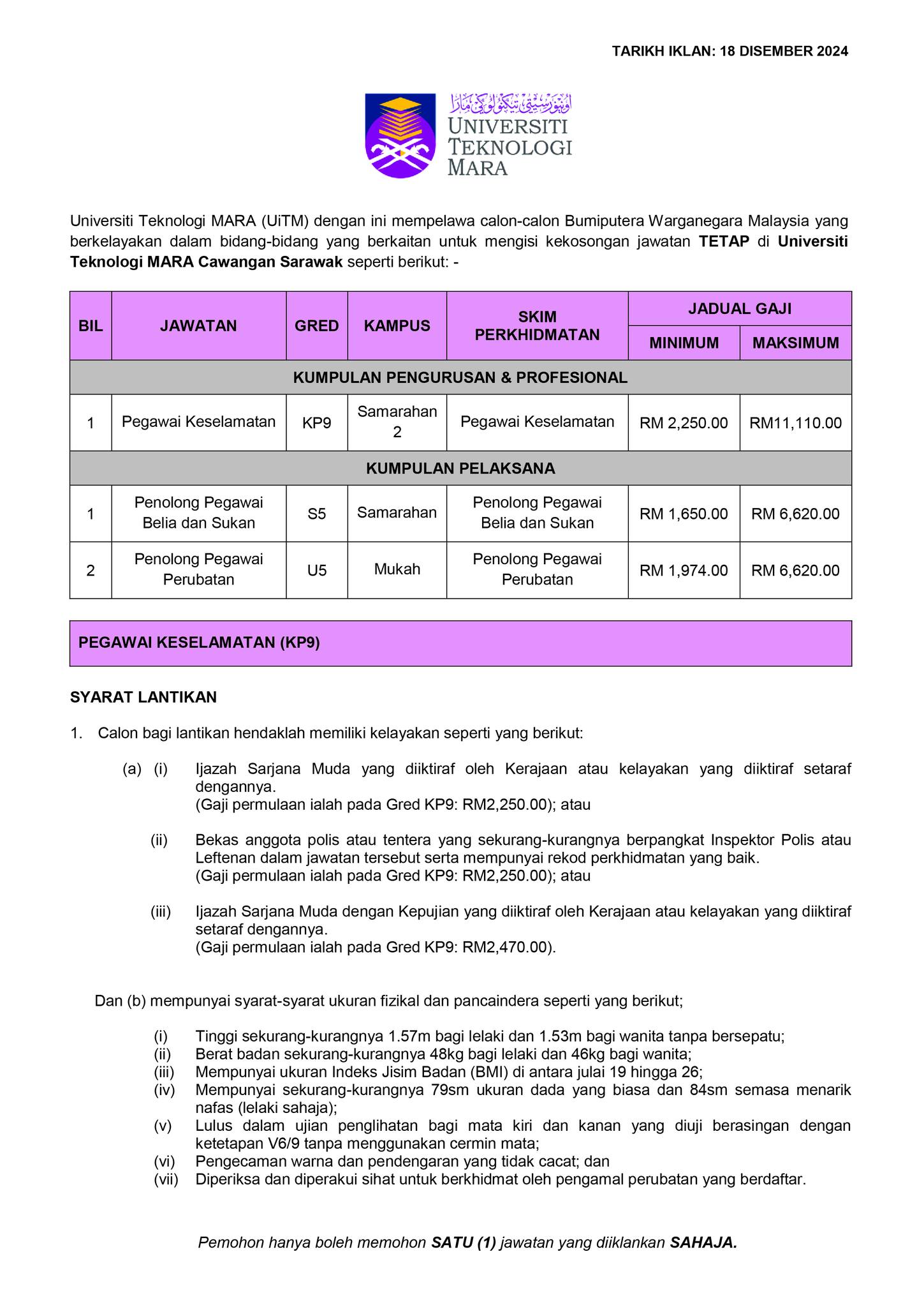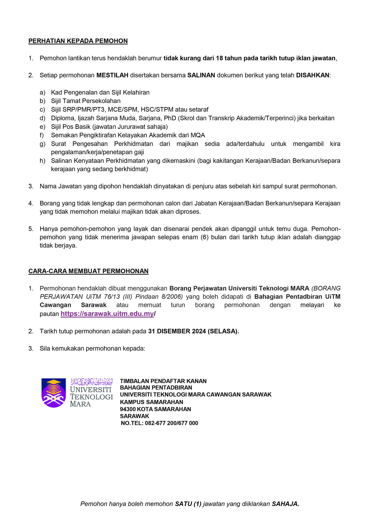 Iklan Jawatan Universiti Teknologi Mara (UiTM) Cawangan Sarawak
