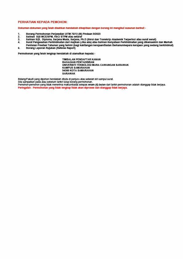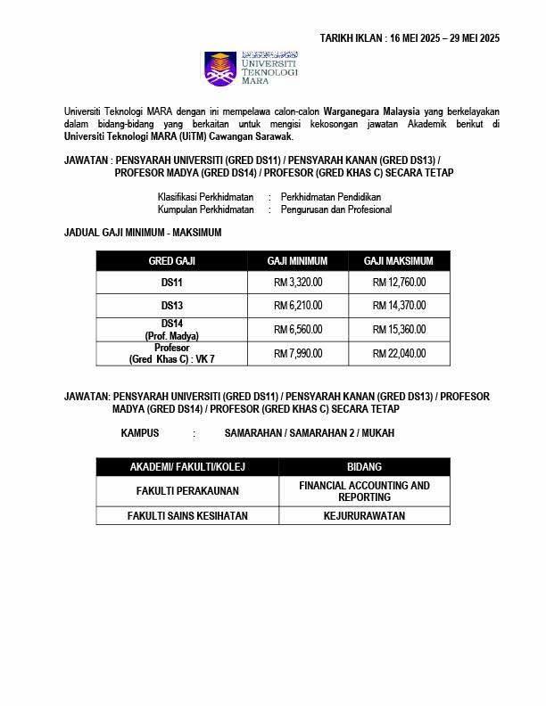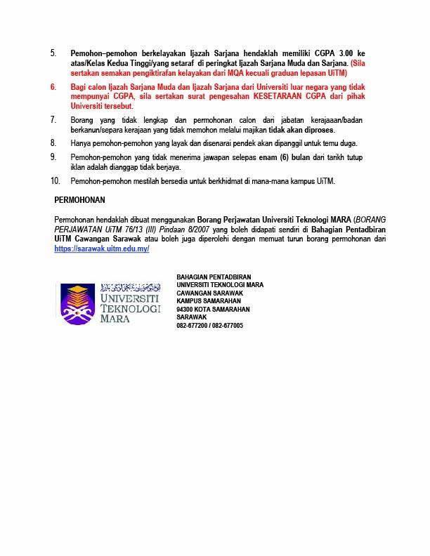 Iklan Jawatan Universiti Teknologi Mara (UiTM) Cawangan Sarawak