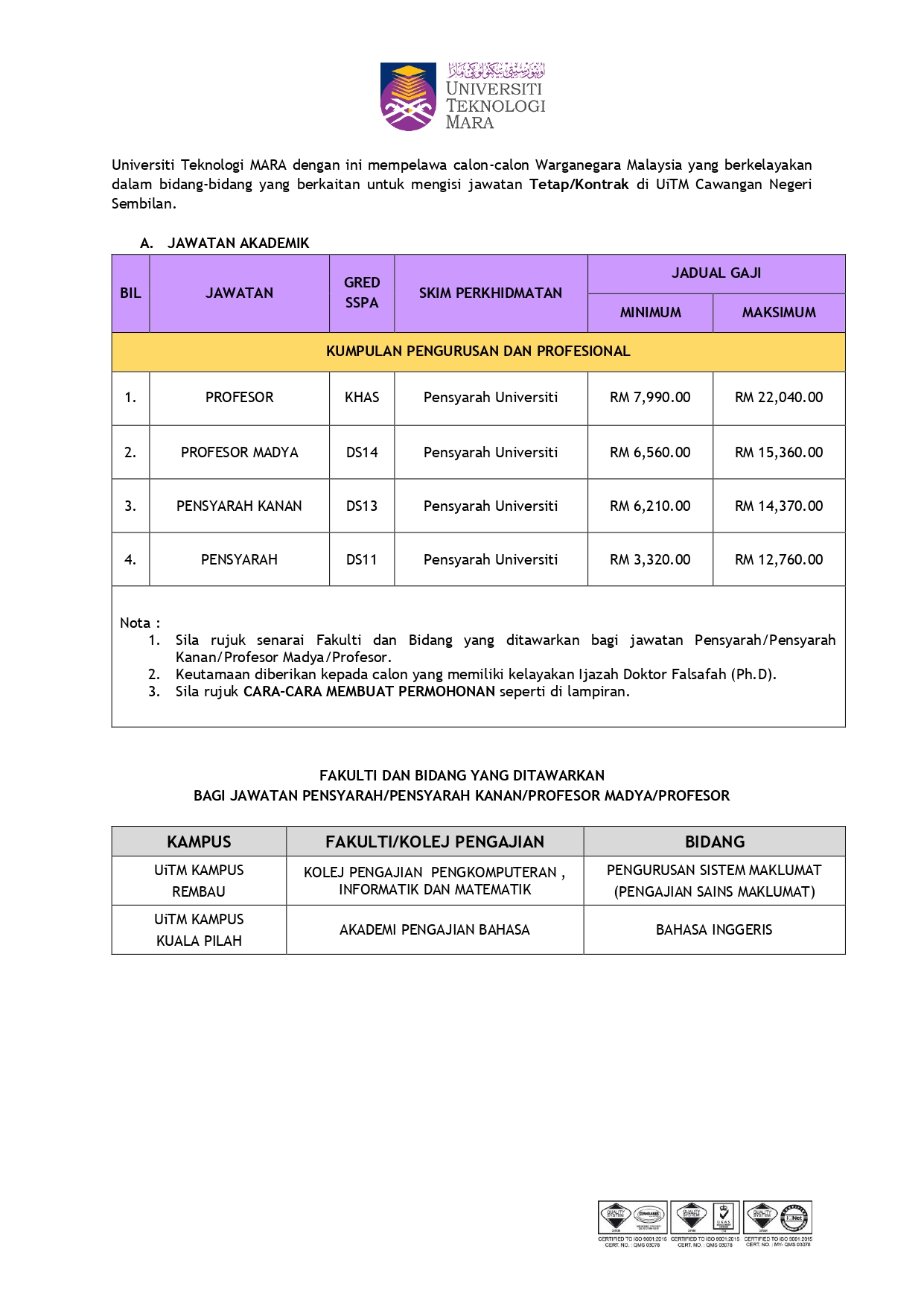 Iklan Jawatan Universiti Teknologi Mara (UiTM) Negeri Sembilan