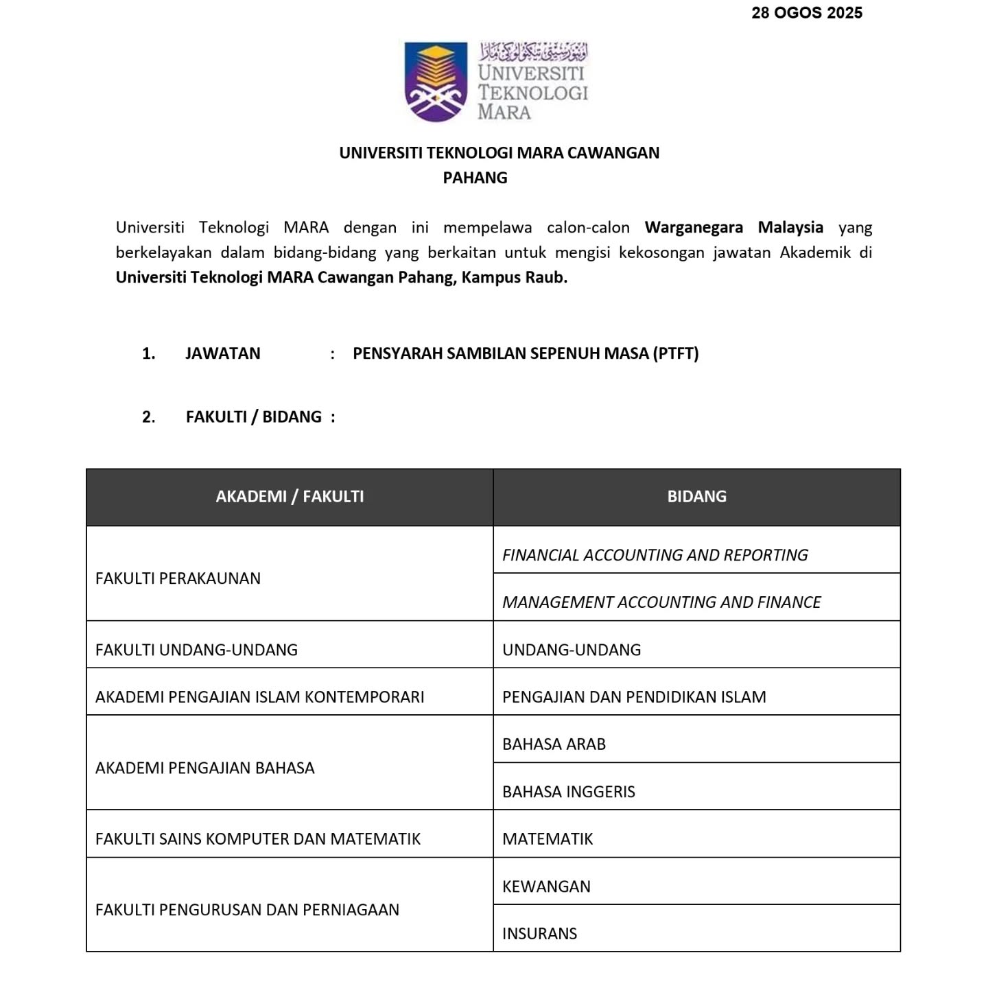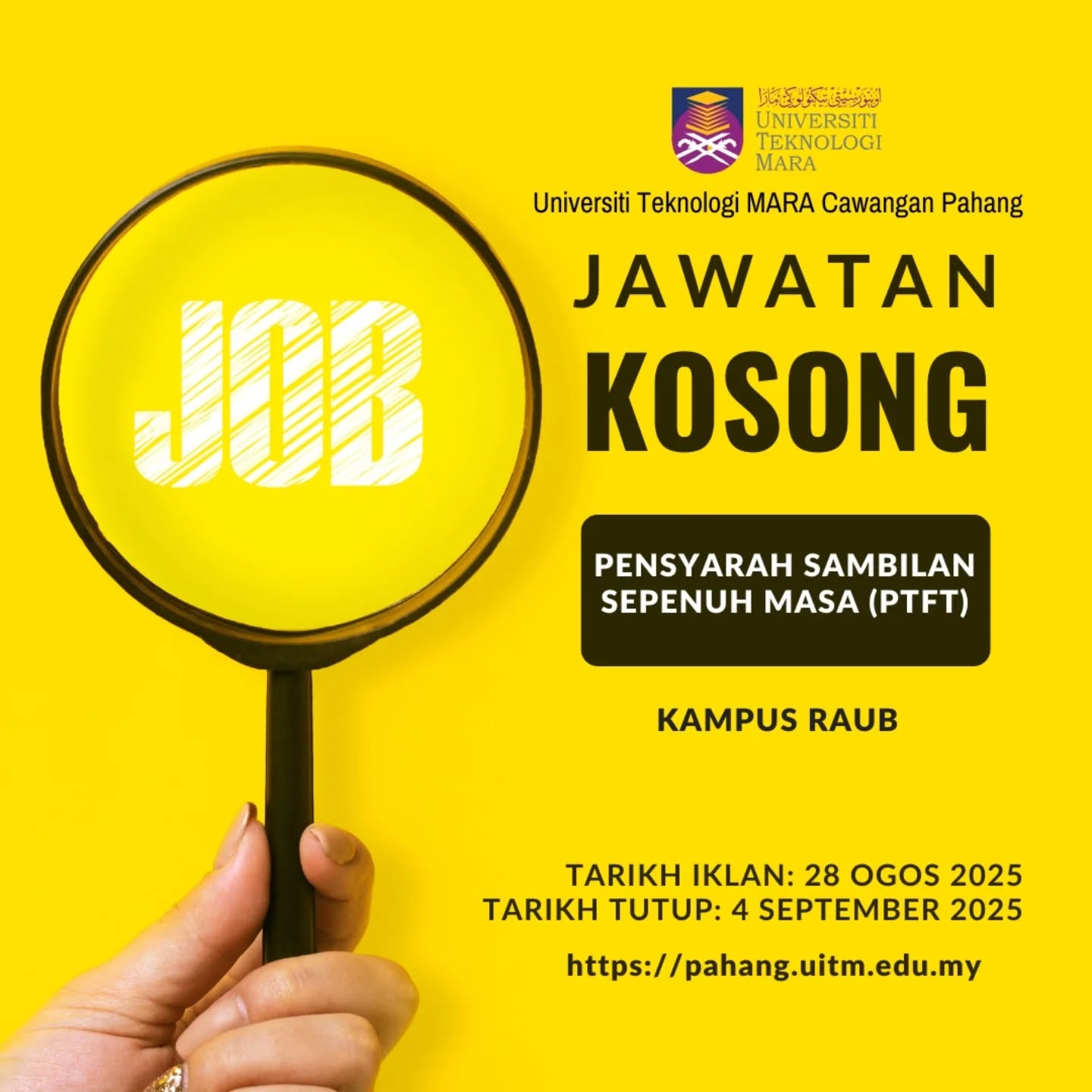 Iklan Jawatan Universiti Teknologi Mara (UiTM) Pahang