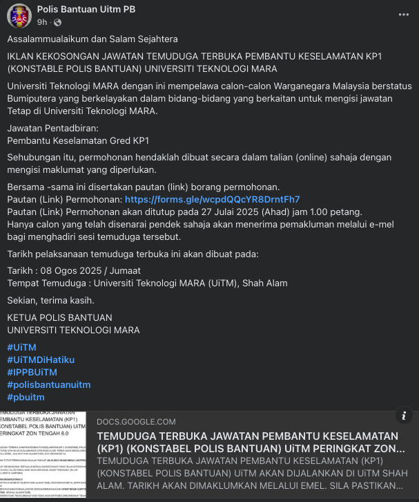 Iklan Jawatan Universiti Teknologi Mara (UiTM)