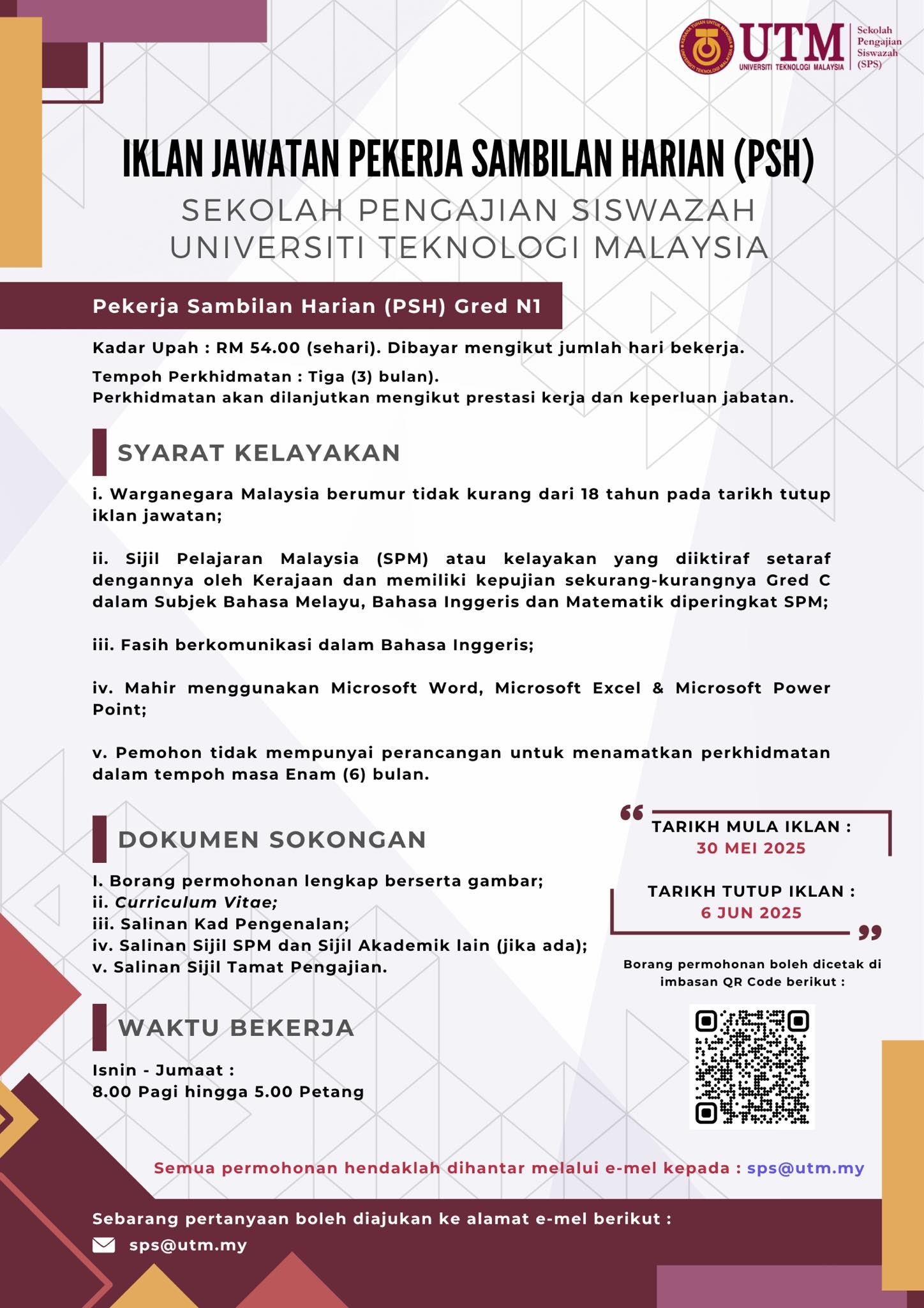 Iklan Jawatan Universiti Teknologi Malaysia (UTM)