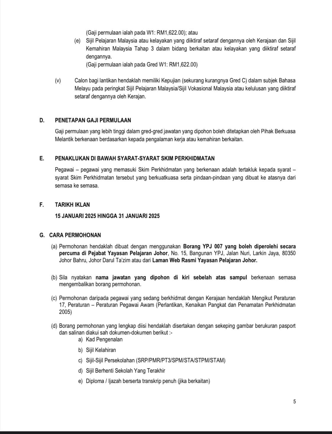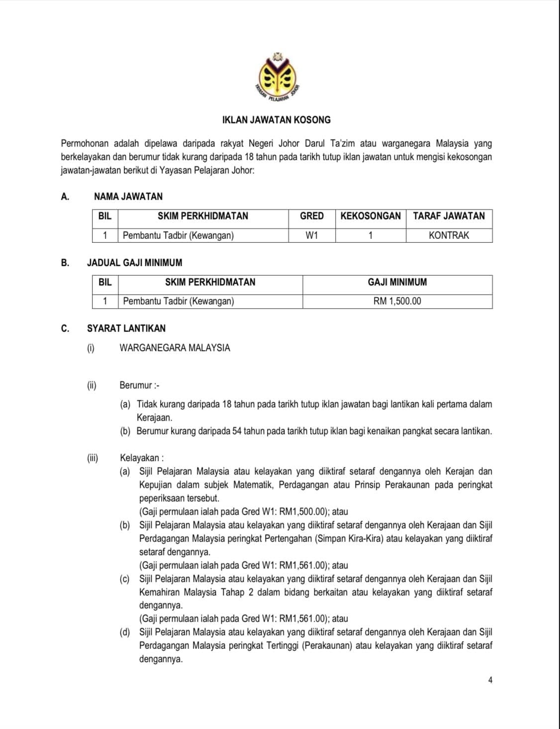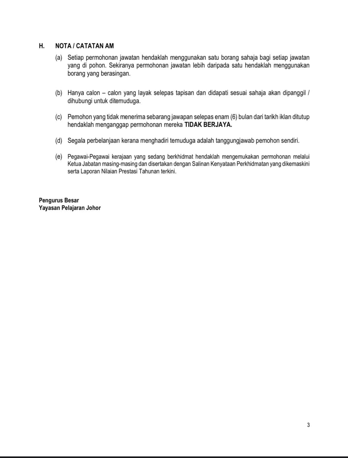 Iklan Jawatan Yayasan Pelajaran Johor (YPJ)