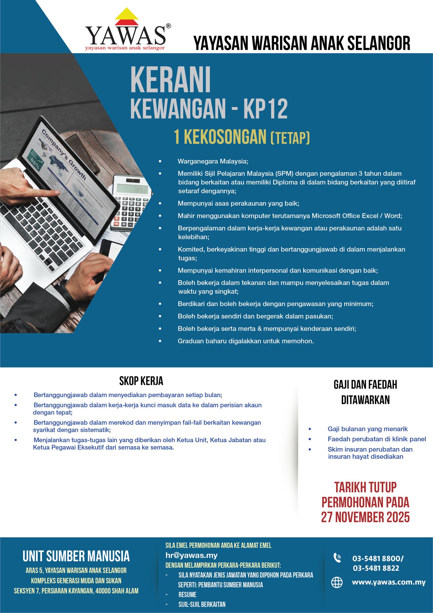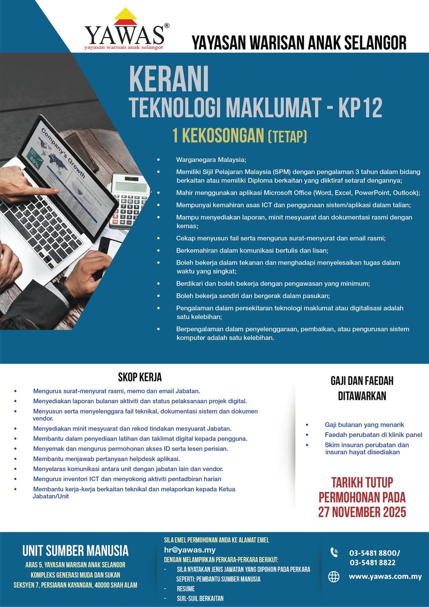 Iklan Jawatan Yayasan Warisan Anak Selangor (YAWAS)