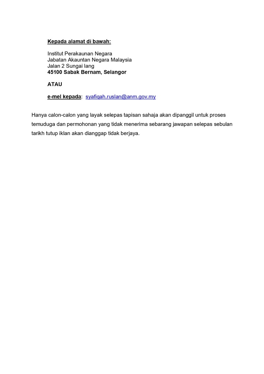 Iklan Kini Institut Perakaunan Negara ~ Kekosongan Jawatan Penolong Eksekutif Teknologi Maklumat Klik Iklan Jawatan Disini