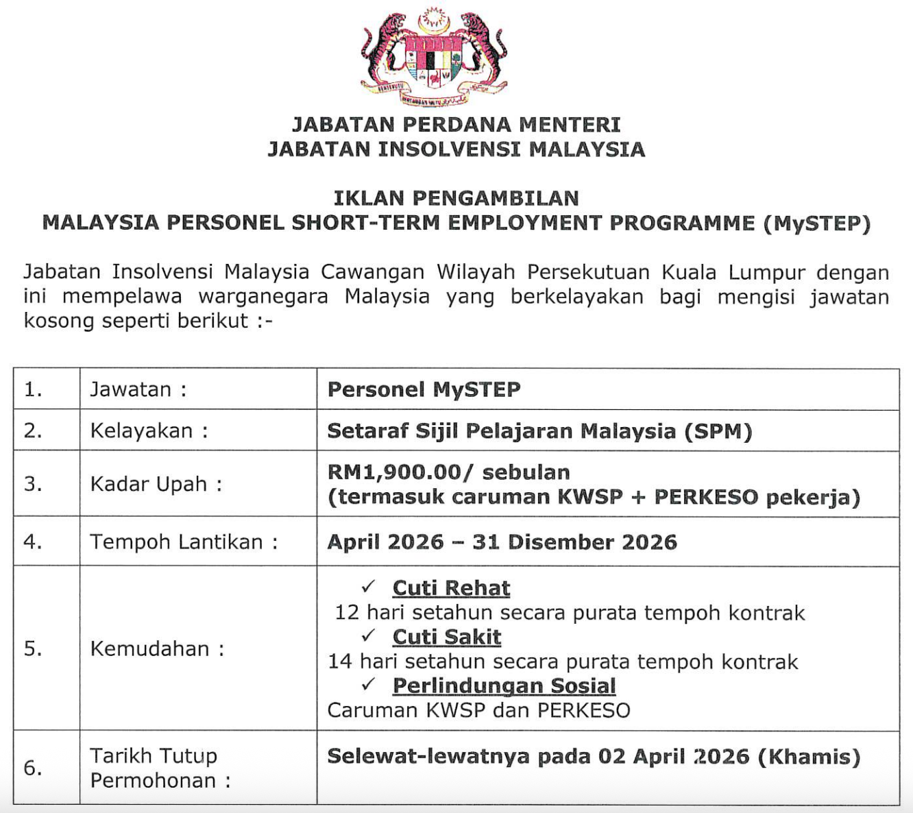 Portal Kerjaya / MANUAL / IKLAN KINI JABATAN INSOLVENSI MALAYSIA NEGERI SELANGOR ~ JAWATAN KOSONG PERSONEL MYSTEP
