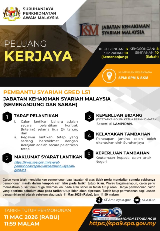 Iklan Kini Jabatan Kehakiman Syariah Malaysia (JKSM) ~ Jawatan Kosong Pembantu Syariah Klik Iklan Jawatan Disini