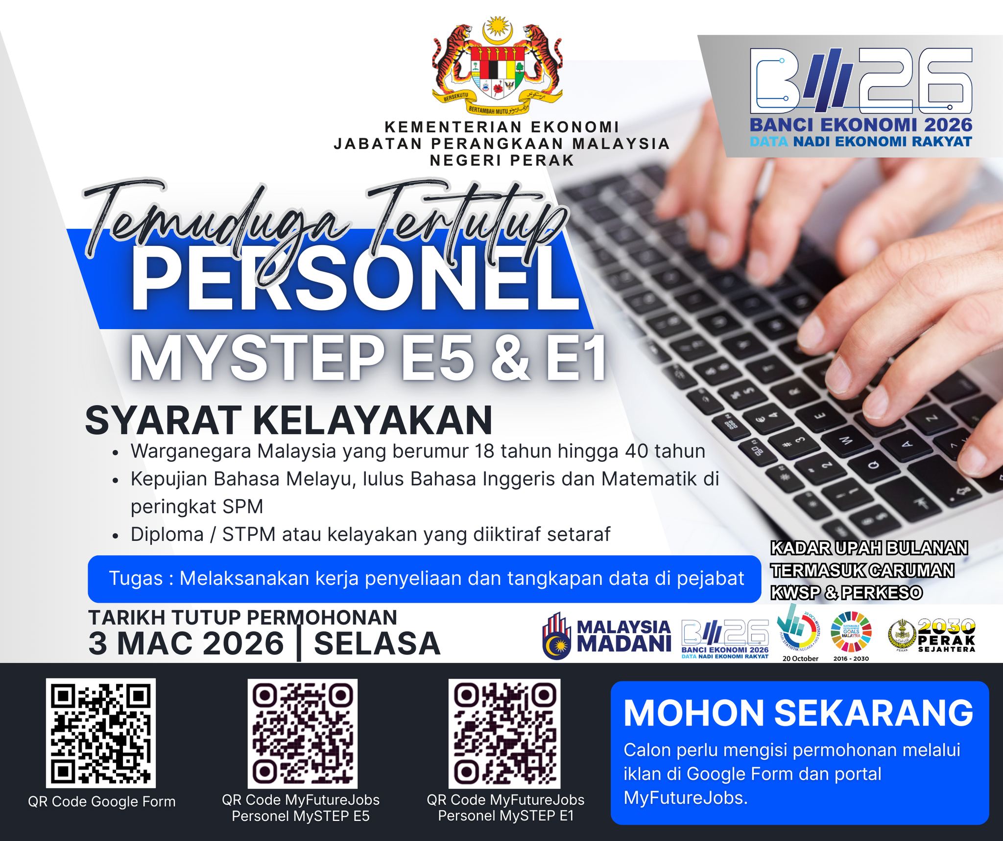 IKlan Kini Jabatan Perangkaan Malaysia Negeri Perak ~ Jawatan Kosong Personel MySTEP