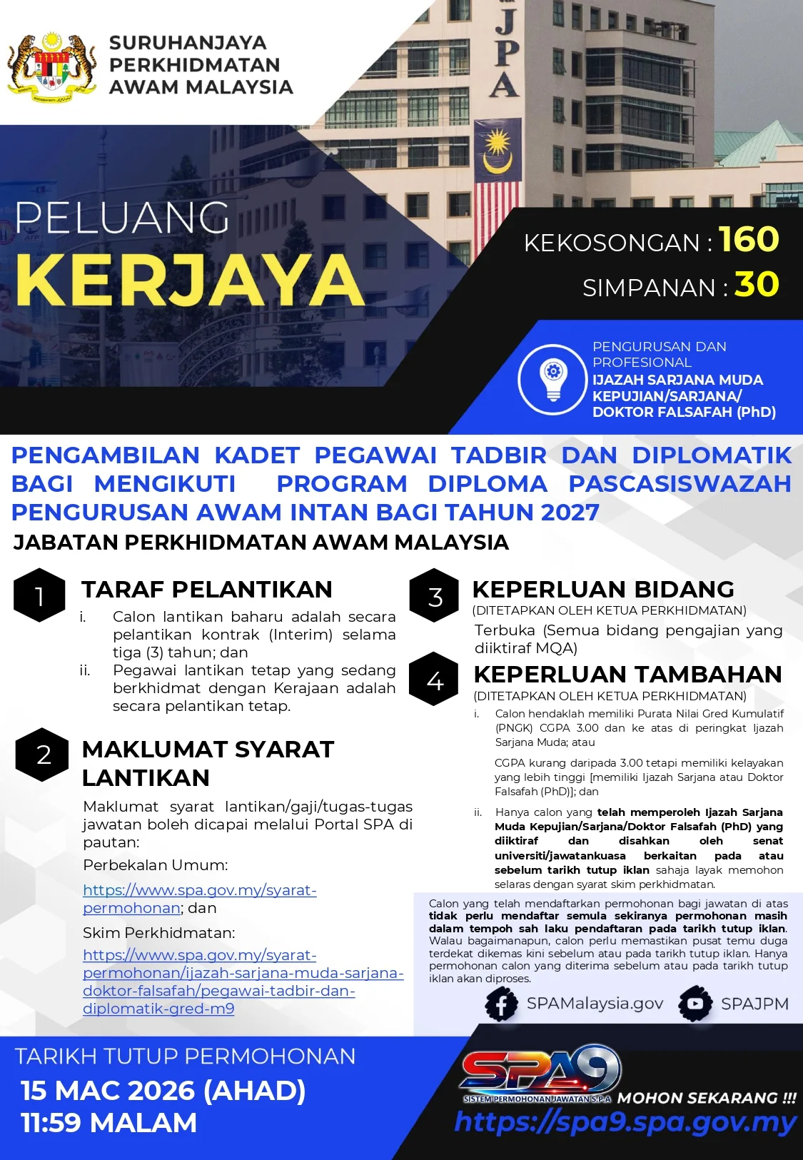 Iklan Kini Jabatan Perkhidmatan Awam Malaysia (JPA) ~ Jawatan Kosong Kadet Pegawai Tadbir Dan Diplomatik Klik Iklan Jawatan Disini