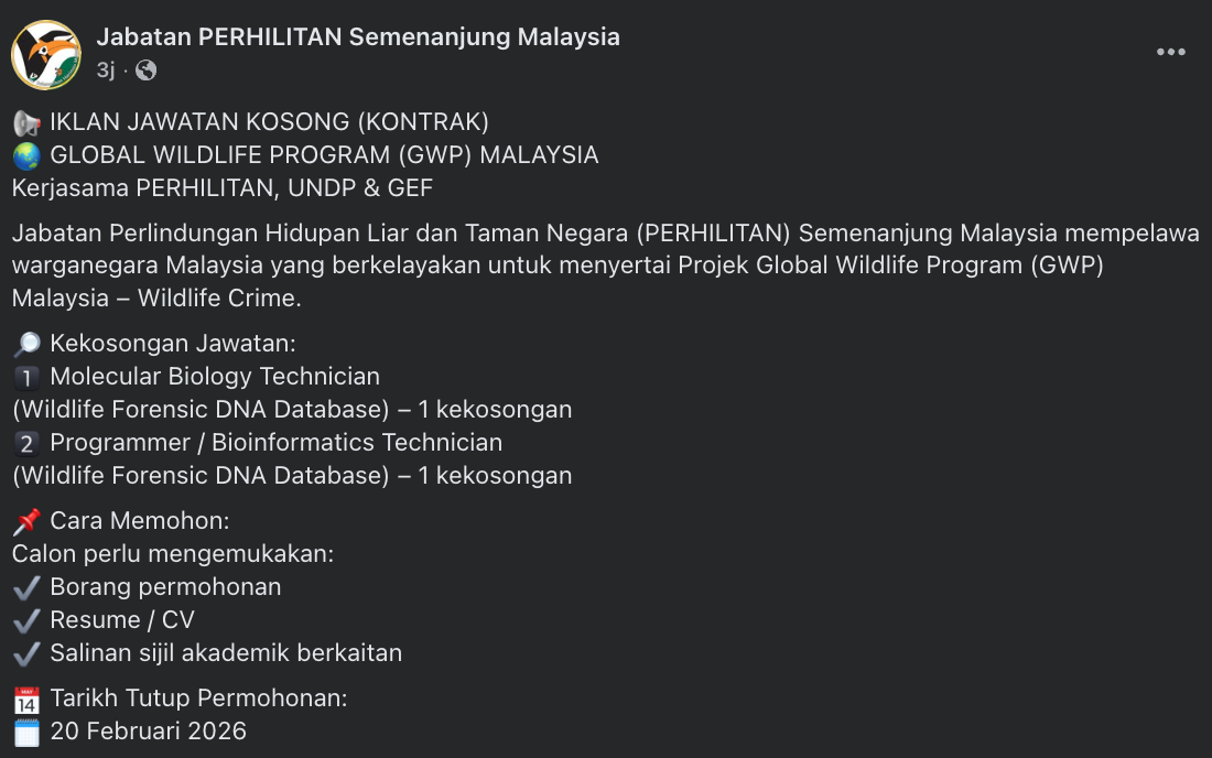 Iklan Kini Jabatan Perlindungan Hidupan Liar Dan Taman Negara (PERHILITAN)