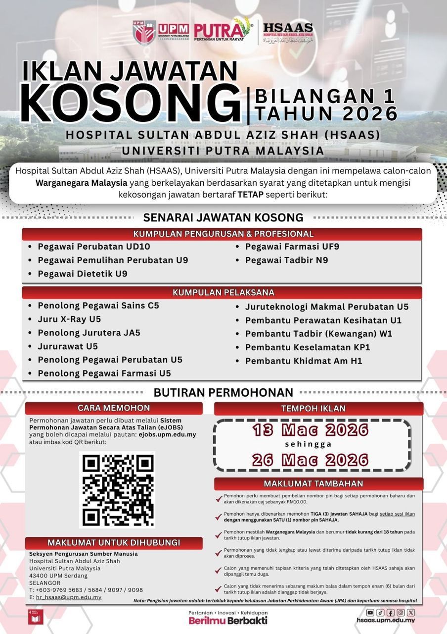 Portal Kerjaya / MANUAL / IKLAN KINI JAWATAN HOSPITAL SULTAN ABDUL AZIZ SHAH (HSAAS)