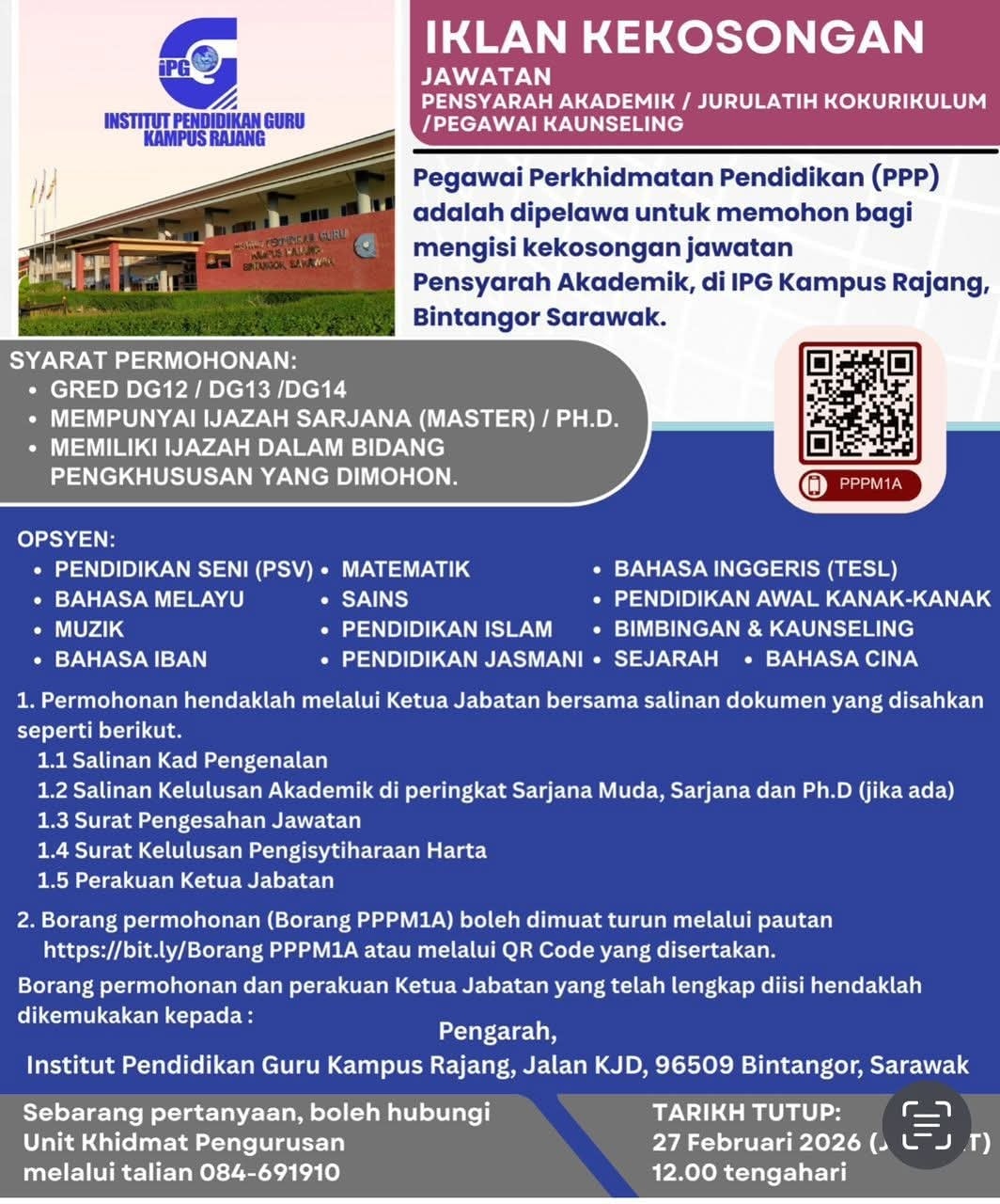 Iklan Kini Jawatan Institut Pendidikan Guru ~ Kekosongan Jawatan Pensyarah