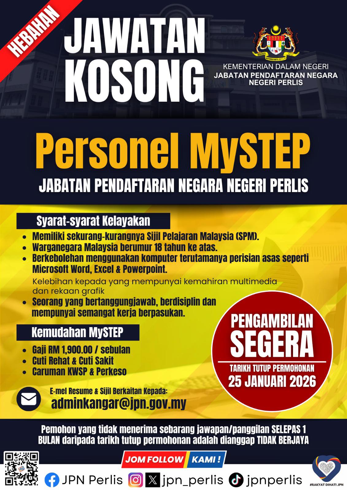 Iklan Kini Jawatan Jabatan Pendaftaran Negara