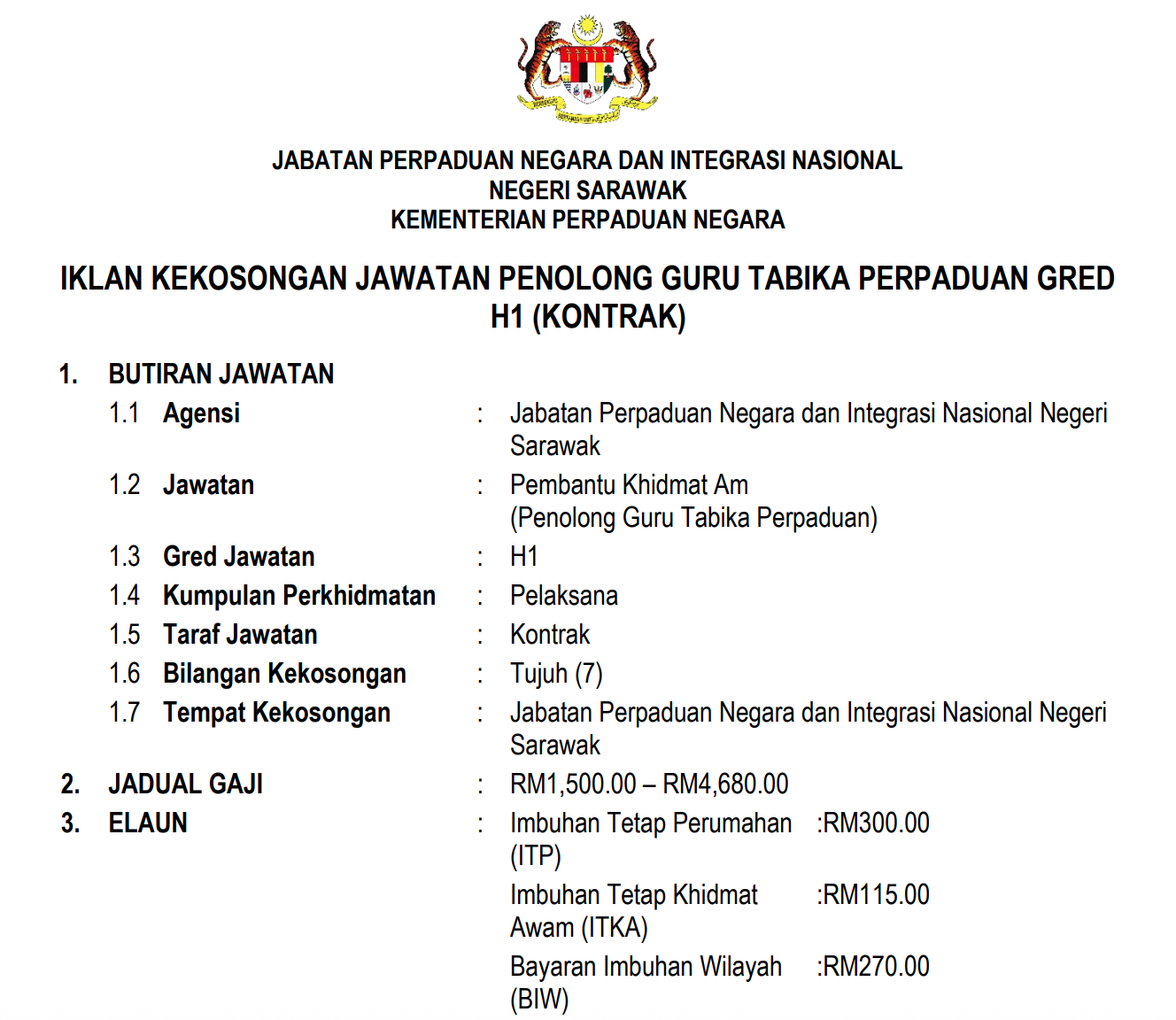 IKLAN KINI JAWATAN JABATAN PERPADUAN NEGARA DAN INTEGRASI