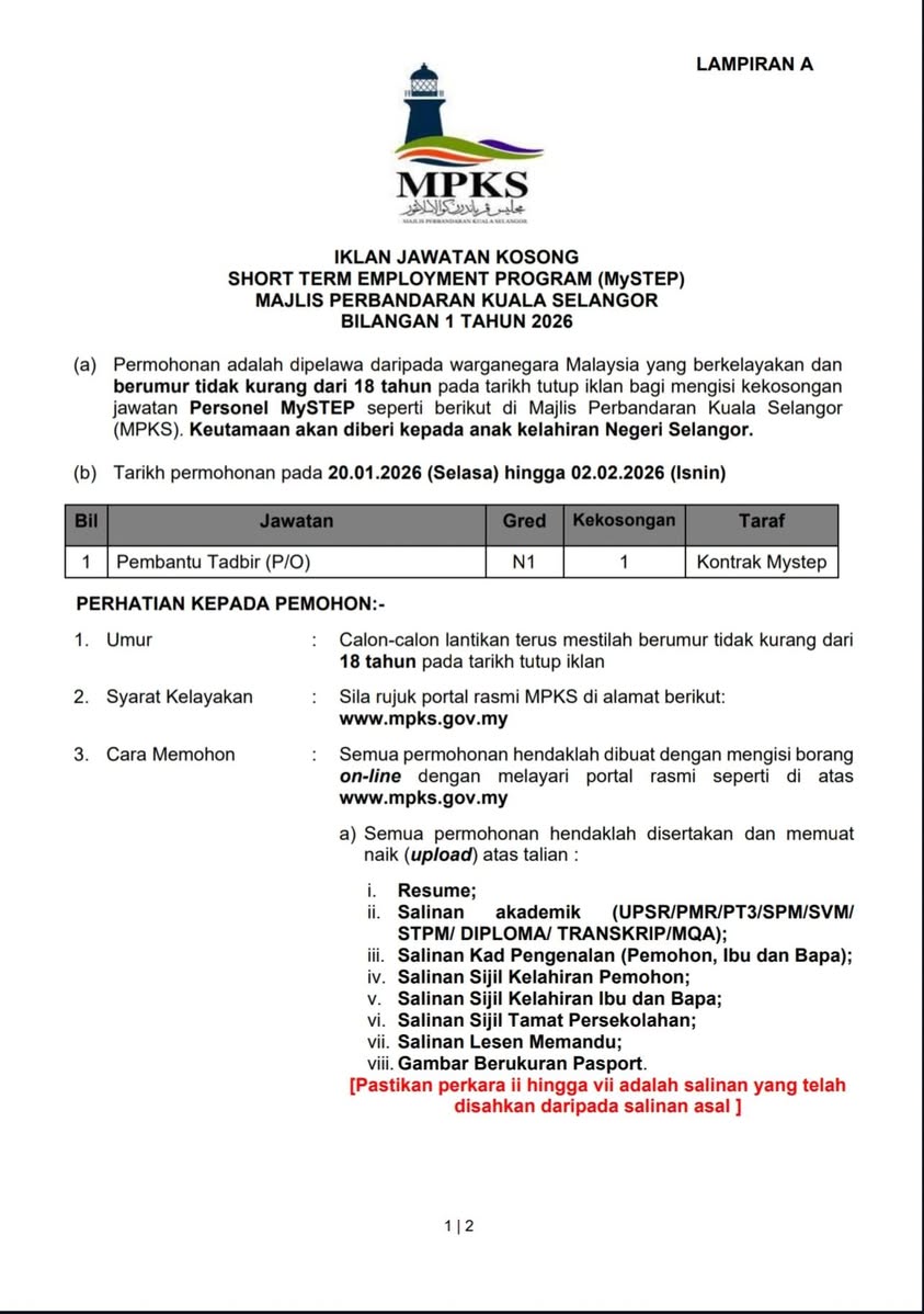 IKLAN KINI JAWATAN JAWATAN KOSONG PERBANDARAN KUALA