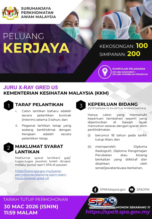 Iklan Kini Jawatan Juru X-Ray Gred U5 Di KKM