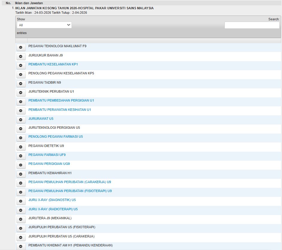 Iklan Kini Jawatan Kosong Hospital Pakar Universiti Sains Malaysia